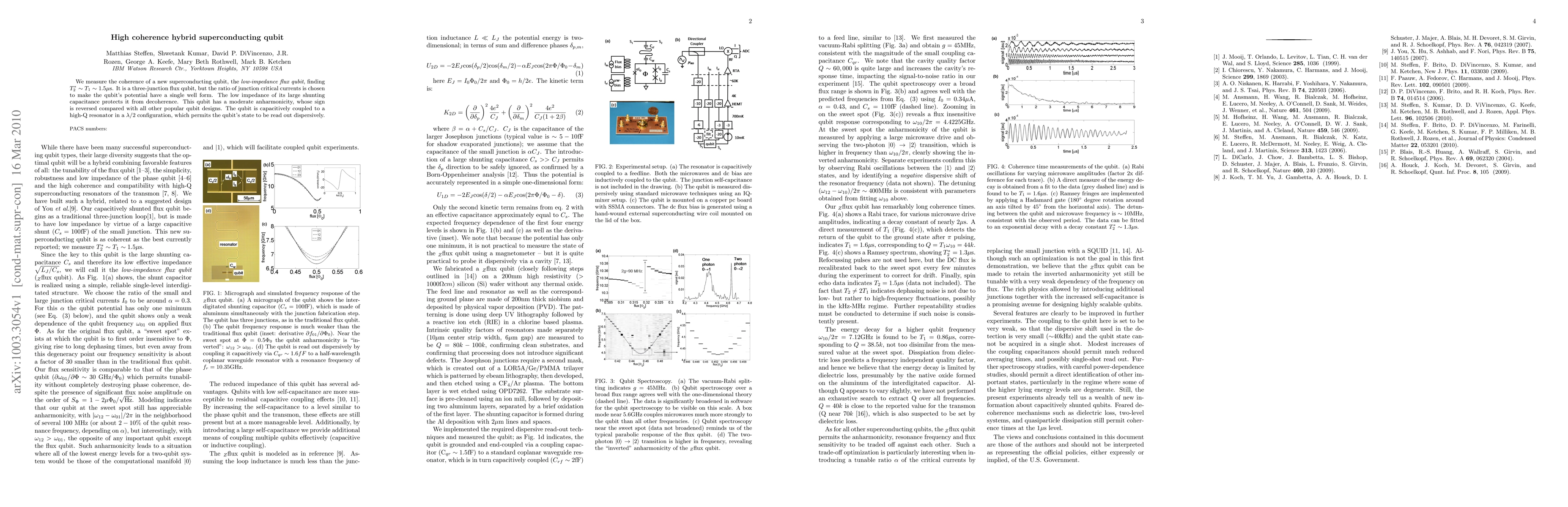 Researchers created a new superconducting qubit with improved coherence, achieving T2* similar to T1 and up to 1.5 microseconds. This hybrid qubit design protects against decoherence using high impedance capacitance and is suitable for dispersive readout with a high-Q resonator.