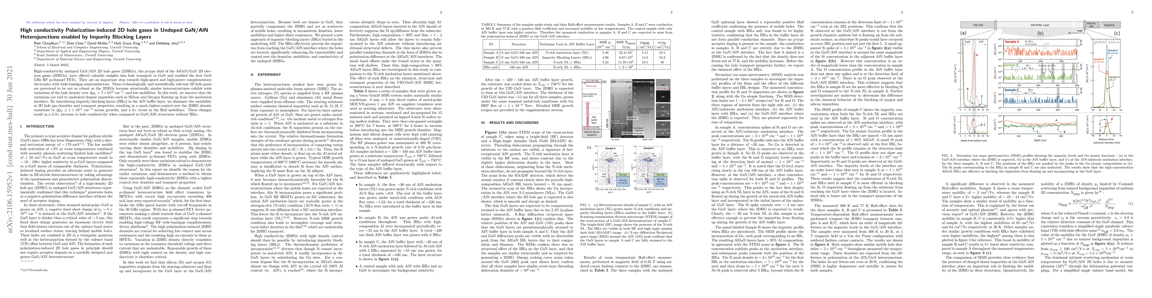 This paper demonstrates that high-conductivity 2D hole gases in undoped GaN/AlN heterojunctions can be achieved by using impurity blocking layers (IBLs) to mitigate the effects of dopant impurities. The introduction of IBLs significantly reduces variability in hole density and enhances Hall mobilities, leading to a notable increase in hole conductivity.