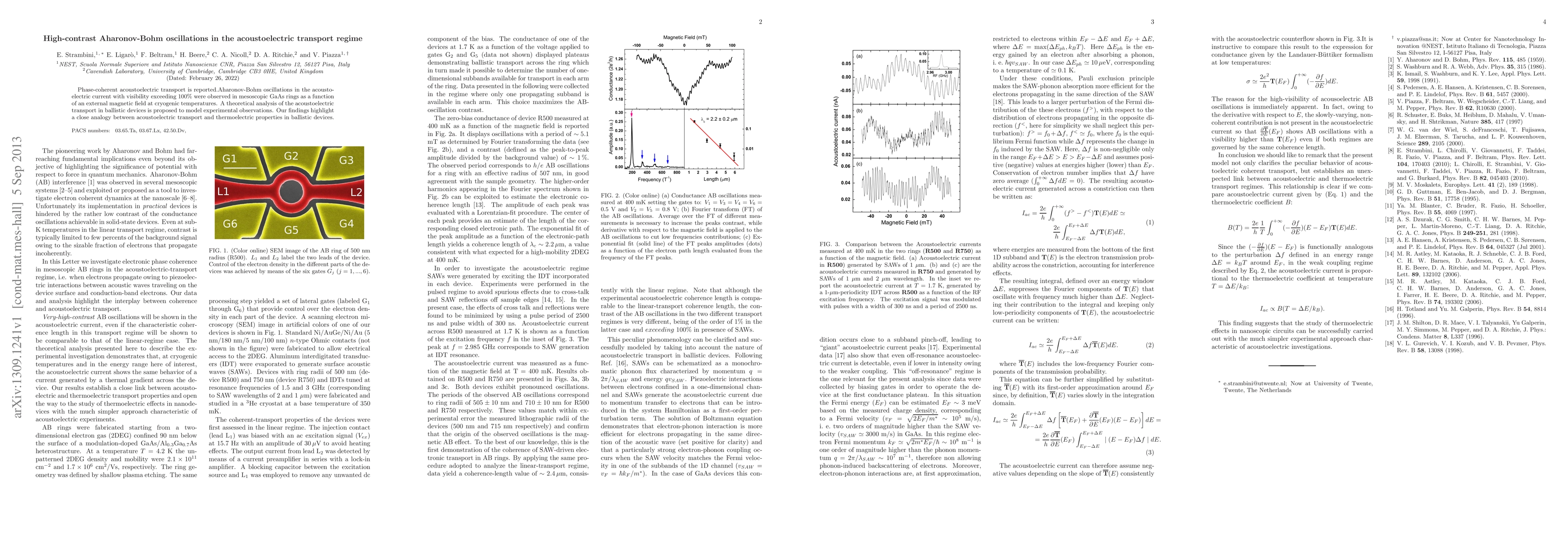 This study reports high-contrast Aharonov-Bohm oscillations in acoustoelectric transport through mesoscopic GaAs rings, with oscillation visibility exceeding 100%. The research provides a theoretical model to explain these observations and highlights the analogy between acoustoelectric transport and thermoelectric properties.