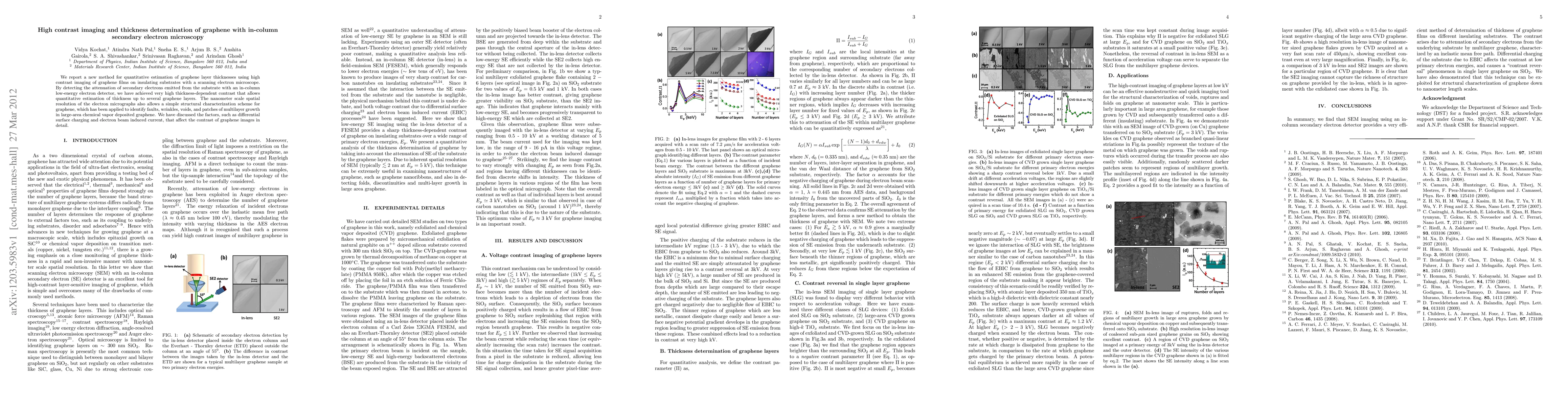 This paper presents a novel method for determining graphene layer thickness using high contrast imaging in a scanning electron microscope, achieving quantitative thickness estimation up to several layers and identifying structural defects in large-area graphene films. The method addresses factors like surface charging and electron beam effects to enhance image contrast.