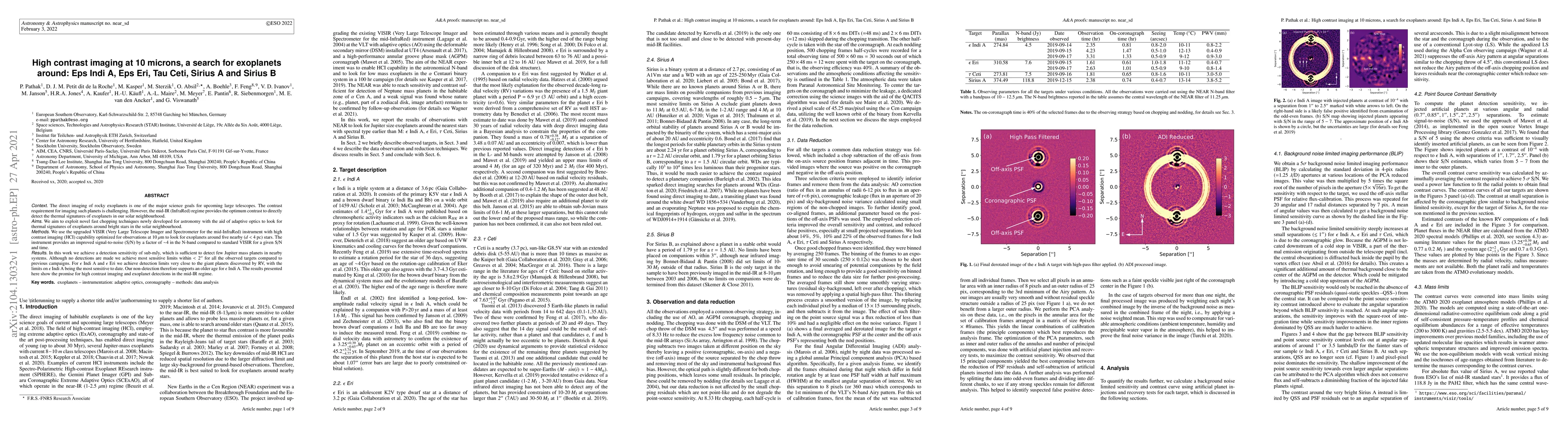 Researchers used advanced imaging techniques to search for exoplanets around five nearby stars, achieving sensitive detection limits in the mid-IR regime and showing promise for future exoplanet discoveries.