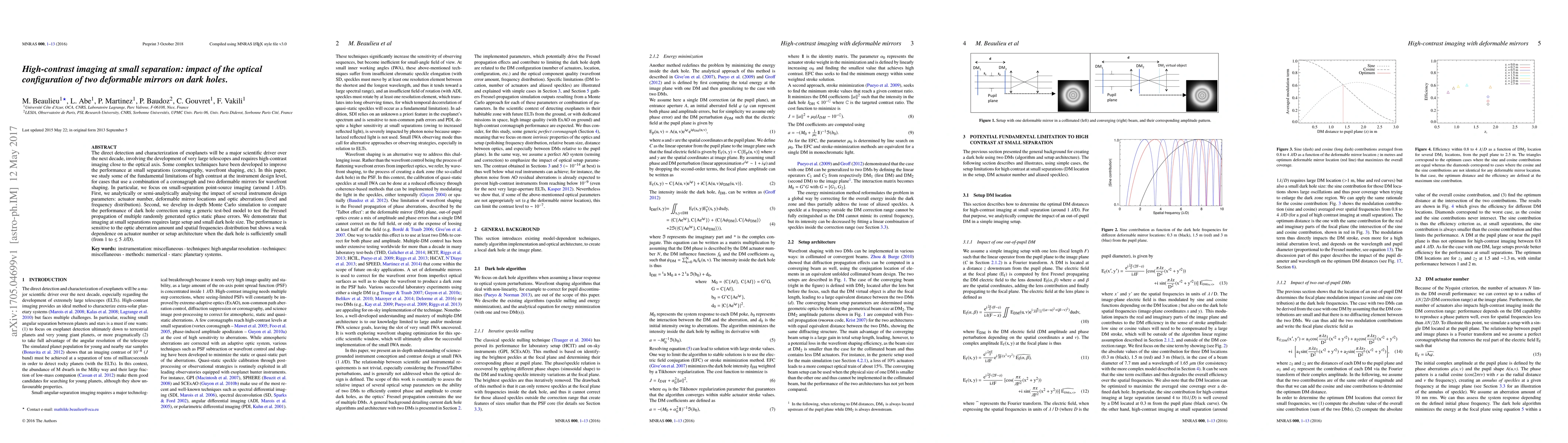 This research analyzes the impact of deformable mirror configurations on high-contrast imaging for exoplanet detection near the optical axis, finding that while actuator count and setup architecture have limited influence, optic aberrations significantly affect performance. Monte Carlo simulations demonstrate the necessity of large setups and small dark hole sizes for successful small-separation point-source imaging.