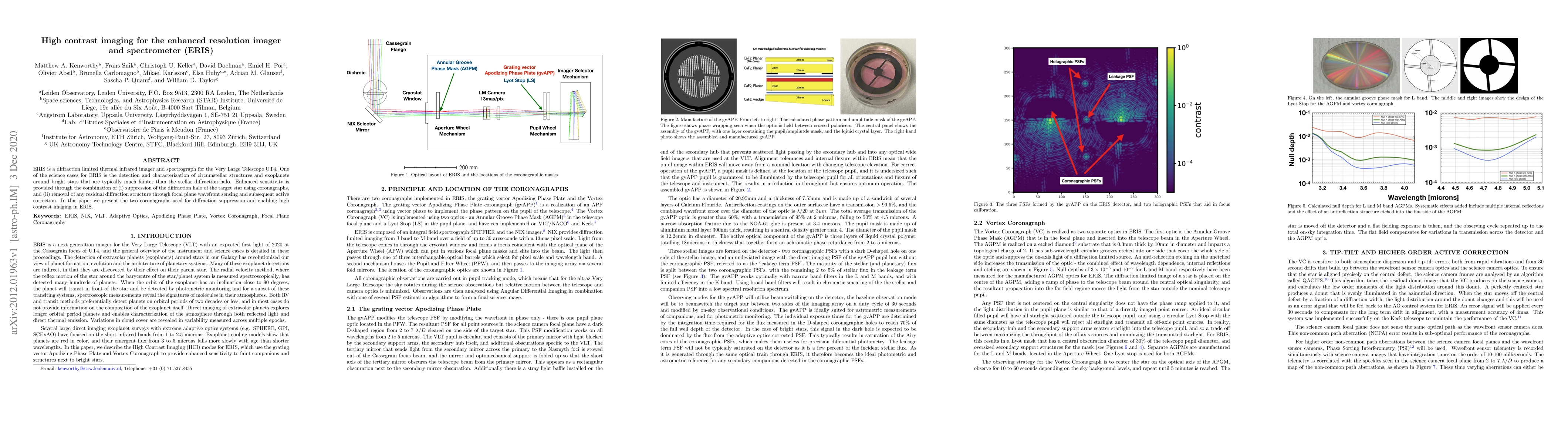 This paper introduces the Enhanced Resolution Imager and Spectrometer (ERIS) for the Very Large Telescope, focusing on its high contrast imaging capabilities. It details the use of two coronagraphs to suppress the diffraction halo of target stars, enabling the detection and characterization of faint circumstellar structures and exoplanets.