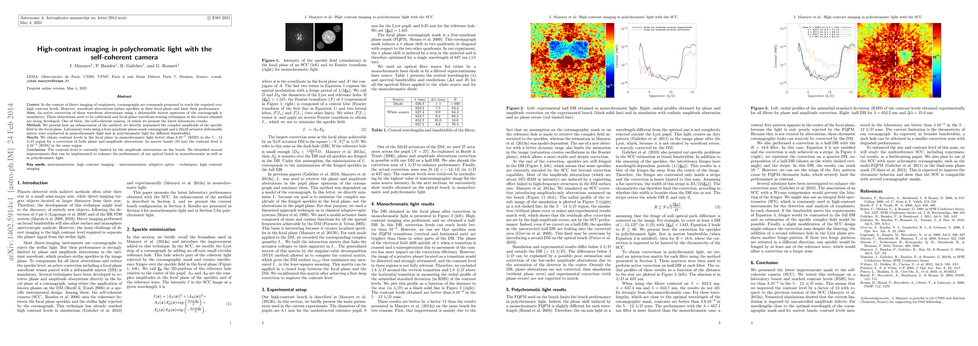 Context. In the context of direct imaging of exoplanets, coronagraphs are commonly proposed to reach the required very high contrast levels. However, wavefront aberrations induce speckles in their focal plane and limit their performance. Aims. An active correction of these wavefront aberrations using a deformable mirror upstream of the coronagraph is mandatory. These aberrations need to be calibrated and focal-plane wavefront-sensing techniques in the science channel are being developed. One of these, the self-coherent camera, of which we present the latest laboratory results. Methods. We present here an enhancement of the method: we directly minimized the complex amplitude of the speckle field in the focal plane. Laboratory tests using a four-quadrant phase-mask coronagraph and a 32x32 actuator deformable mirror were conducted in monochromatic light and in polychromatic light for different bandwidths. Results. We obtain contrast levels in the focal plane in monochromatic light better than 3.10^-8 (RMS) in the 5 - 12 {\lambda}/D region for a correction of both phase and amplitude aberrations. In narrow bands (10 nm) the contrast level is 4.10^-8 (RMS) in the same region. Conclusions. The contrast level is currently limited by the amplitude aberrations on the bench. We identified several improvements that can be implemented to enhance the performance of our optical bench in monochromatic as well as in polychromatic light.