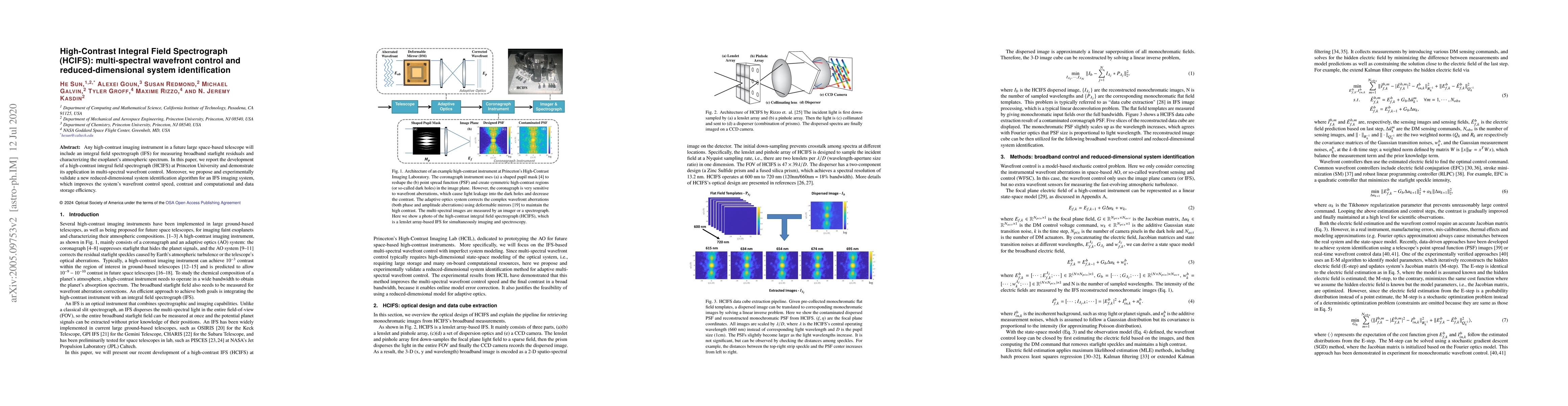 This paper details the development of a high-contrast integral field spectrograph (HCIFS) for future space-based telescopes, focusing on multi-spectral wavefront control and exoplanet atmospheric characterization. It also introduces a new reduced-dimensional system identification algorithm that enhances wavefront control speed, contrast, and efficiency in data storage and computation.
