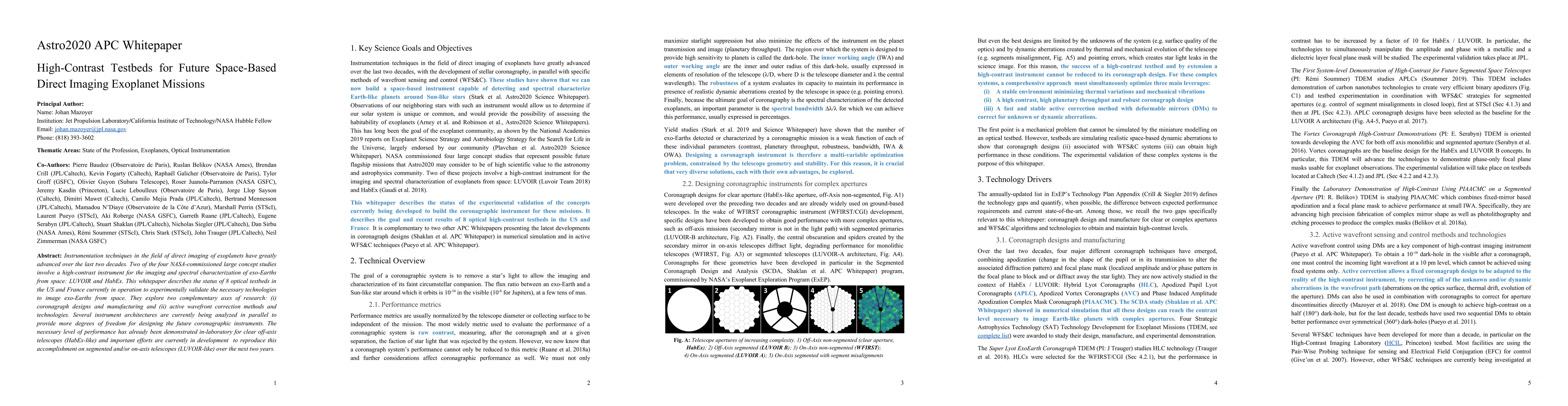 This paper reviews eight operational high-contrast testbeds in the US and France that validate technologies for future space-based direct imaging of exoplanets, focusing on coronagraph designs and active wavefront correction methods. The testbeds aim to achieve the necessary performance for LUVOIR and HabEx missions, with significant progress already made for off-axis telescopes and ongoing efforts to replicate this for segmented and on-axis telescopes.