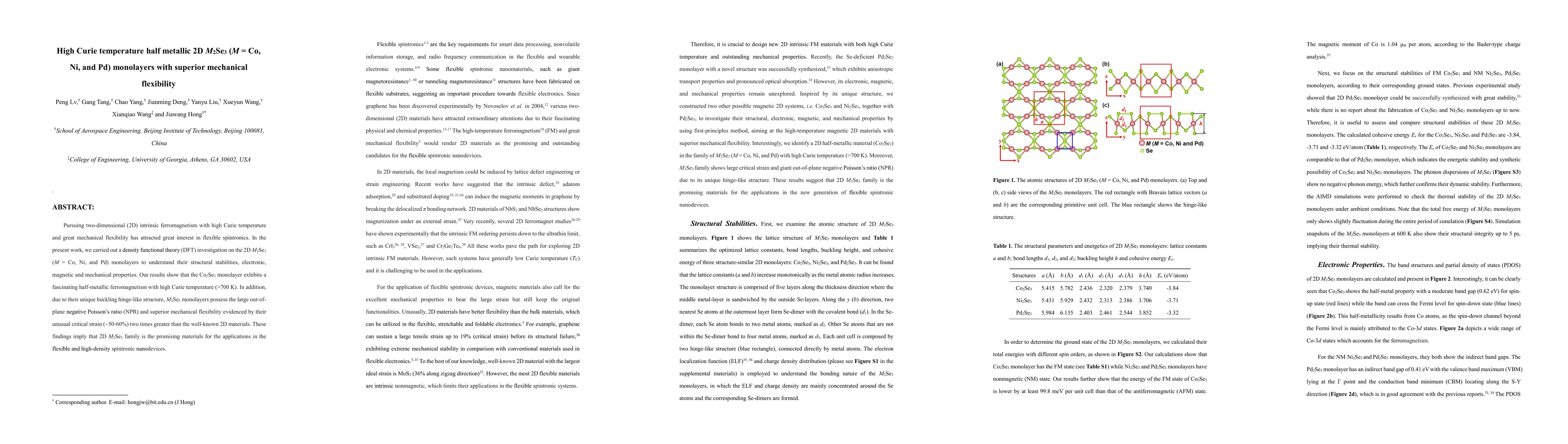 Researchers discovered a 2D material called M2Se3 with high Curie temperature and exceptional mechanical flexibility, making it suitable for flexible spintronics applications.