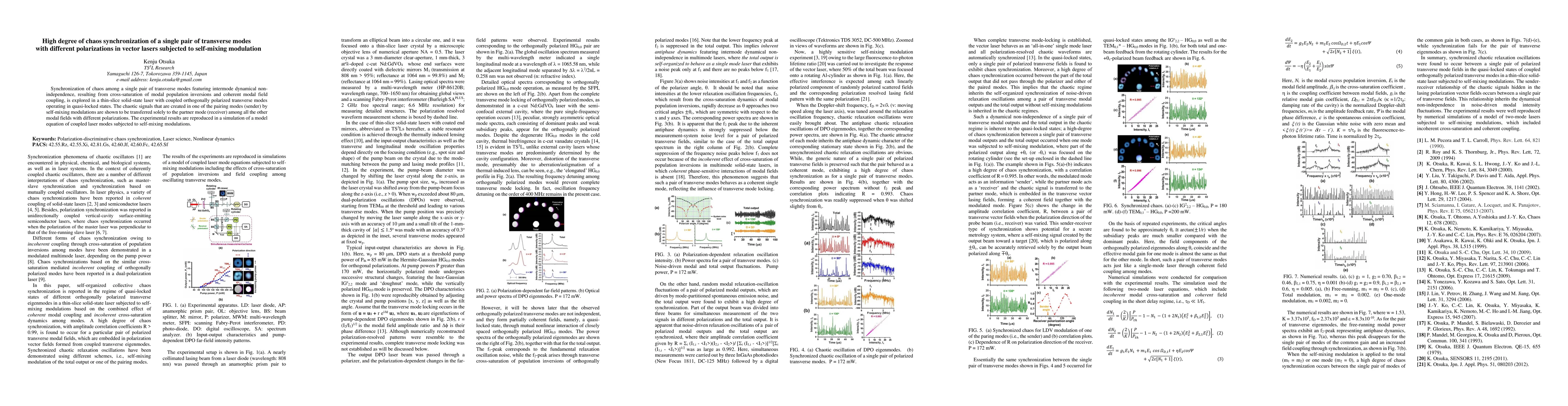 Synchronization of chaos among a single pair of transverse modes featuring intermode dynamical non-independence, resulting from cross-saturation of modal population inversions and coherent modal field coupling, is explored in a thin-slice solid-state laser with coupled orthogonally polarized transverse modes operating in quasi-locked states. The chaotic signals that are created in one of the pairing modes (sender) by self-mixing modulations are shown to be transferred solely to the partner mode (receiver) among all the other modal fields with different polarizations. The experimental results are reproduced in a simulation of a model equation of coupled laser modes subjected to self-mixing modulations.