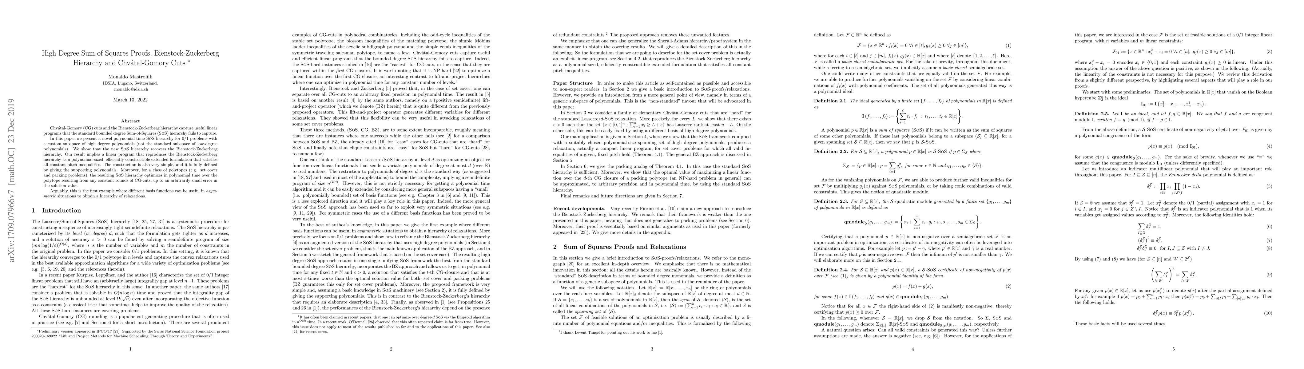 This paper introduces a novel polynomial time SOS hierarchy for 0/1 problems using high degree polynomials, which recovers the Bienstock-Zuckerberg hierarchy and efficiently reproduces it as a linear program. It optimizes over polytopes resulting from Chvatal-Gomory cuts, demonstrating the utility of different basis functions in asymmetric situations.