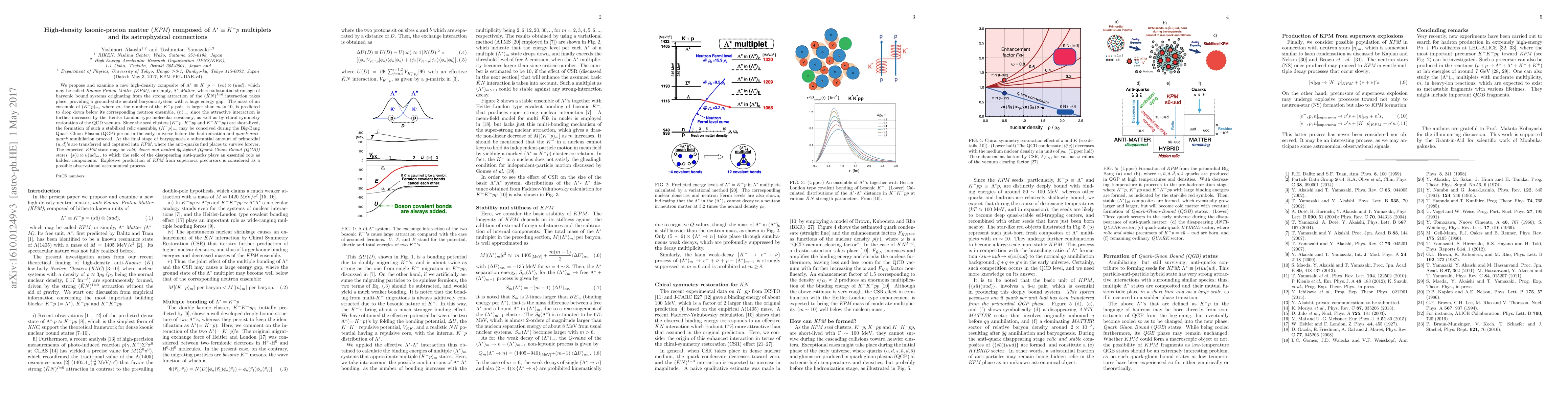 We propose and examine a new high-density composite of $\Lambda^* \equiv K^-p = (s \bar{u}) \otimes (uud)$, which may be called {\it Kaonic Proton Matter (KPM)}, or simply, {\it $\Lambda^* $-Matter}, where substantial shrinkage of baryonic bound systems originating from the strong attraction of the $(\bar{K}N)^{I=0}$ interaction takes place, providing a ground-state neutral baryonic system with a huge energy gap. The mass of an ensemble of $(K^-p)_m$, where $m$, the number of the $K^-p$ pair, is larger than $m \approx 10$, is predicted to drop down below its corresponding neutron ensemble, $(n)_m$, since the attractive interaction is further increased by the Heitler-London type molecular covalency, as well as by chiral symmetry restoration of the QCD vacuum. Since the seed clusters ($K^-p$, $K^-pp$ and $K^-K^-pp$) are short-lived, the formation of such a stabilized relic ensemble, $(K^-p)_m$, may be conceived during the Big-Bang Quark Gluon Plasma (QGP) period in the early universe before the hadronization and $quark$-$anti$-$quark$ annihilation proceed. At the final stage of baryogenesis a substantial amount of primordial ($\bar{u},\bar{d}$)'s are transferred and captured into {\it KPM}, where the anti-quarks find places to survive forever. The expected {\it KPM} state may be {\it cold, dense and neutral $\bar{q} q$-hybrid ({\it Quark Gluon Bound (QGB)}) states, $[s(\bar{u} \otimes u) ud]_m$,} to which the relic of the disappearing anti-quarks plays an essential role as hidden components. The {\it KPM} may also be produced during the formation and decay of neutron stars.