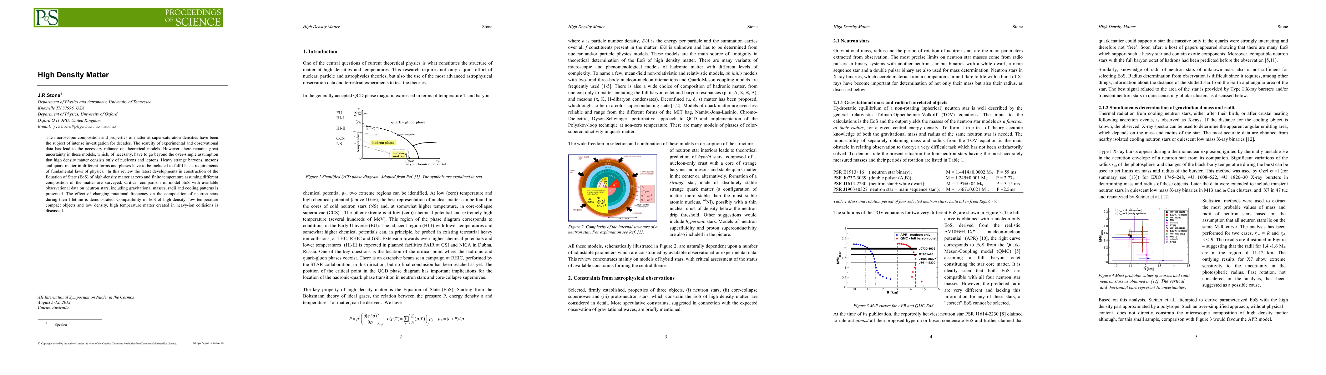 This paper reviews recent advancements in modeling the Equation of State (EoS) for high-density matter, considering various compositions beyond nucleons and leptons. It critically compares theoretical models with observational data from neutron stars and discusses the impact of rotation on neutron star composition and the compatibility of EoS across different physical states.