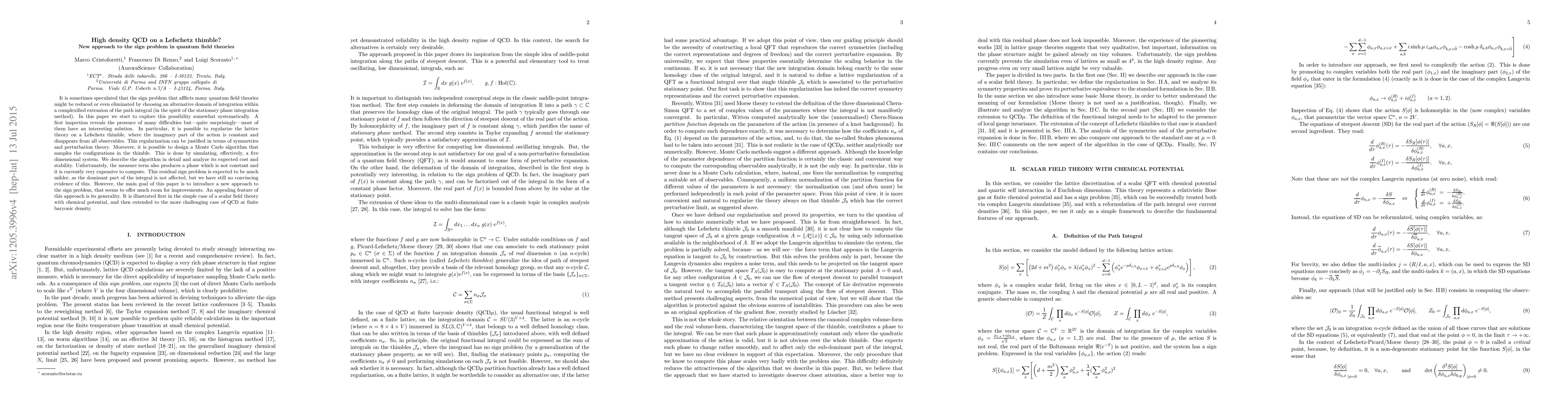 It is sometimes speculated that the sign problem that afflicts many quantum field theories might be reduced or even eliminated by choosing an alternative domain of integration within a complexified extension of the path integral (in the spirit of the stationary phase integration method). In this paper we start to explore this possibility somewhat systematically. A first inspection reveals the presence of many difficulties but - quite surprisingly - most of them have an interesting solution. In particular, it is possible to regularize the lattice theory on a Lefschetz thimble, where the imaginary part of the action is constant and disappears from all observables. This regularization can be justified in terms of symmetries and perturbation theory. Moreover, it is possible to design a Monte Carlo algorithm that samples the configurations in the thimble. This is done by simulating, effectively, a five dimensional system. We describe the algorithm in detail and analyze its expected cost and stability. Unfortunately, the measure term also produces a phase which is not constant and it is currently very expensive to compute. This residual sign problem is expected to be much milder, as the dominant part of the integral is not affected, but we have still no convincing evidence of this. However, the main goal of this paper is to introduce a new approach to the sign problem, that seems to offer much room for improvements. An appealing feature of this approach is its generality. It is illustrated first in the simple case of a scalar field theory with chemical potential, and then extended to the more challenging case of QCD at finite baryonic density.