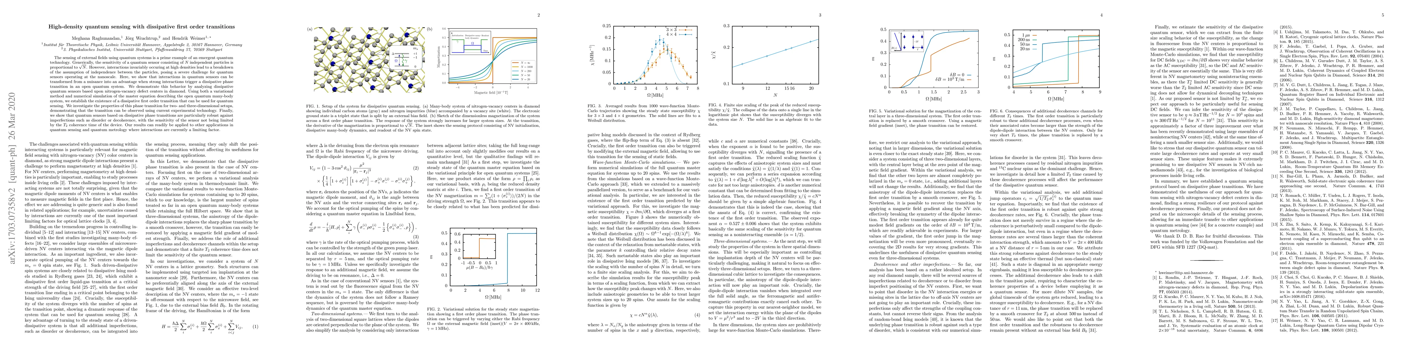 The sensing of external fields using quantum systems is a prime example of an emergent quantum technology. Generically, the sensitivity of a quantum sensor consisting of $N$ independent particles is proportional to $\sqrt{N}$. However, interactions invariably occuring at high densities lead to a breakdown of the assumption of independence between the particles, posing a severe challenge for quantum sensors operating at the nanoscale. Here, we show that interactions in quantum sensors can be transformed from a nuisance into an advantage when strong interactions trigger a dissipative phase transition in an open quantum system. We demonstrate this behavior by analyzing dissipative quantum sensors based upon nitrogen-vacancy defect centers in diamond. Using both a variational method and numerical simulation of the master equation describing the open quantum many-body system, we establish the existence of a dissipative first order transition that can be used for quantum sensing. We investigate the properties of this phase transition for two- and three-dimensional setups, demonstrating that the transition can be observed using current experimental technology. Finally, we show that quantum sensors based on dissipative phase transitions are particularly robust against imperfections such as disorder or decoherence, with the sensitivity of the sensor not being limited by the $T_2$ coherence time of the device. Our results can readily be applied to other applications in quantum sensing and quantum metrology where interactions are currently a limiting factor.