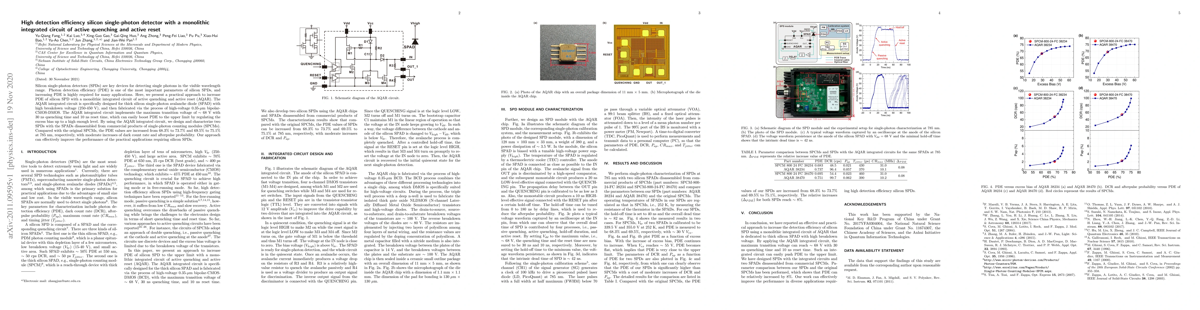 This paper presents a silicon single-photon detector (SPD) with a monolithic integrated circuit for active quenching and reset (AQAR) to enhance photon detection efficiency (PDE). The AQAR circuit boosts PDE from 68.3% to 73.7% and 69.5% to 75.1% at 785 nm, demonstrating improved performance for practical applications requiring high-efficiency silicon SPDs.