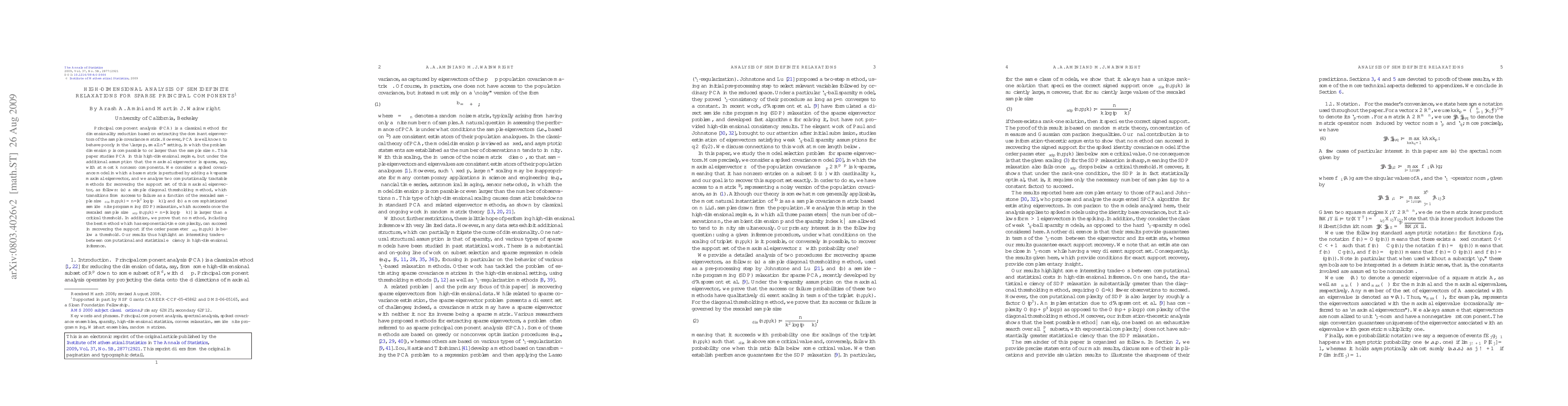 Researchers studied how to analyze data in high dimensions when there are many variables but only a few are important. They found that using simple methods can fail, but more complex methods like semidefinite programming can succeed under certain conditions.
