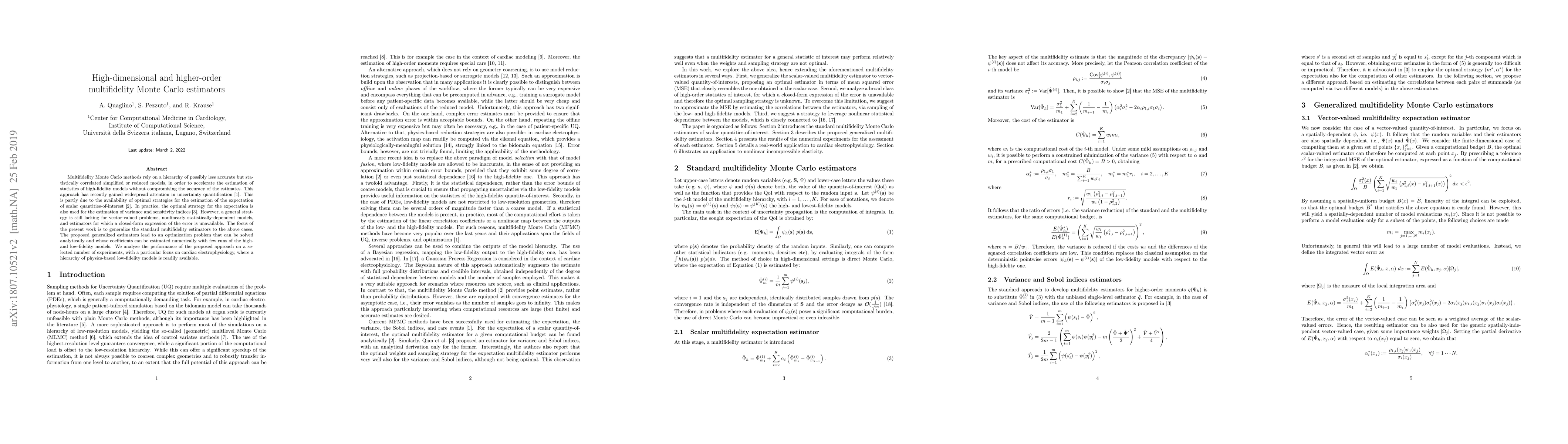 This paper proposes generalized multifidelity Monte Carlo estimators for high-dimensional and higher-order problems, extending existing methods to handle vector-valued outputs, nonlinear dependencies, and scenarios without closed-form error expressions. The new estimators are analytically optimized and numerically estimated with minimal high-fidelity model runs, demonstrated through experiments in cardiac electrophysiology.