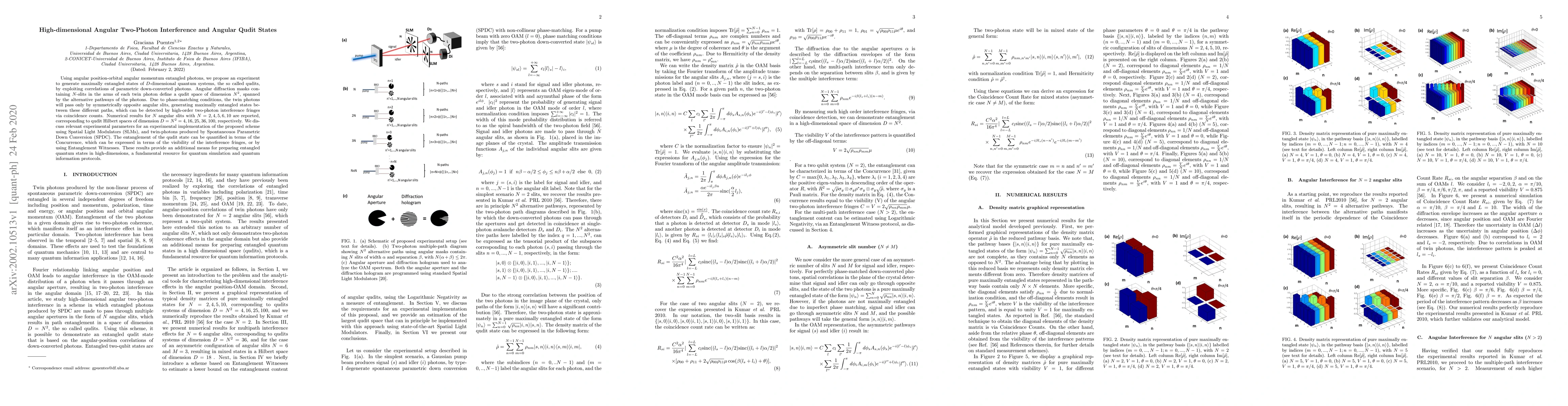 This paper proposes an experiment to generate maximally entangled $D$-dimensional quantum states (qudits) using angular position-orbital angular momentum entangled photons and parametric down-conversion. The experiment leverages angular diffraction masks to define a qudit space and exploits phase-matching conditions to produce high-order two-photon interference fringes, enabling the detection of entangled states.