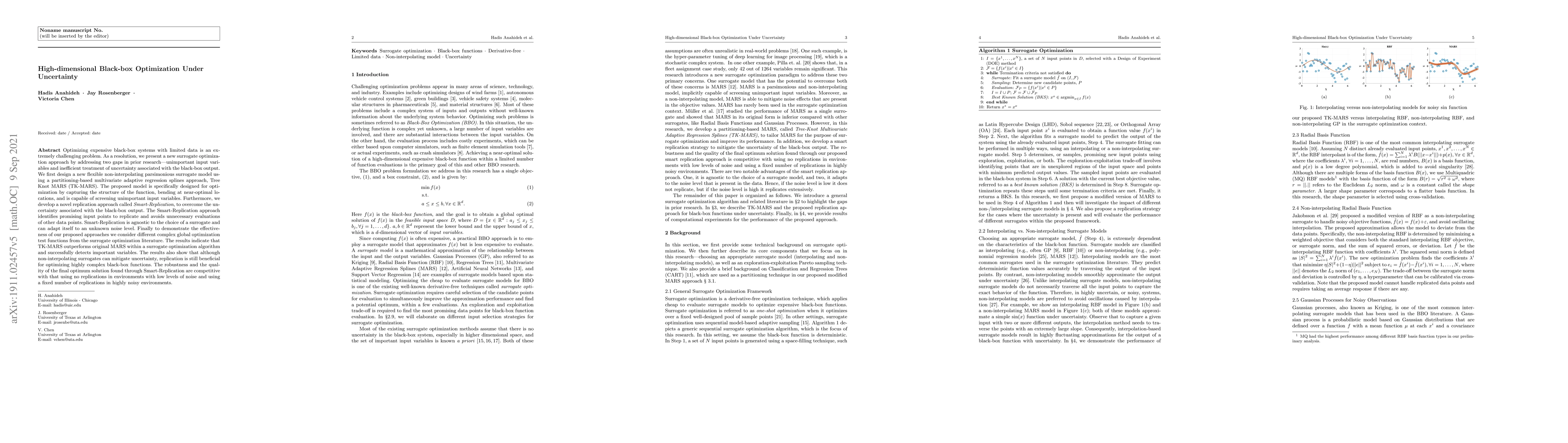 Optimizing expensive black-box systems with limited data is an extremely challenging problem. As a resolution, we present a new surrogate optimization approach by addressing two gaps in prior research -- unimportant input variables and inefficient treatment of uncertainty associated with the black-box output. We first design a new flexible non-interpolating parsimonious surrogate model using a partitioning-based multivariate adaptive regression splines approach, Tree Knot MARS (TK-MARS). The proposed model is specifically designed for optimization by capturing the structure of the function, bending at near-optimal locations, and is capable of screening unimportant input variables. Furthermore, we develop a novel replication approach called \emph{Smart-Replication}, to overcome the uncertainty associated with the black-box output. The Smart-Replication approach identifies promising input points to replicate and avoids unnecessary evaluations of other data points. Smart-Replication is agnostic to the choice of a surrogate and can adapt itself to an unknown noise level. Finally to demonstrate the effectiveness of our proposed approaches we consider different complex global optimization test functions from the surrogate optimization literature. The results indicate that TK-MARS outperforms original MARS within a surrogate optimization algorithm and successfully detects important variables. The results also show that although non-interpolating surrogates can mitigate uncertainty, replication is still beneficial for optimizing highly complex black-box functions. The robustness and the quality of the final optimum solution found through Smart-Replication are competitive with that using no replications in environments with low levels of noise and using a fixed number of replications in highly noisy environments.