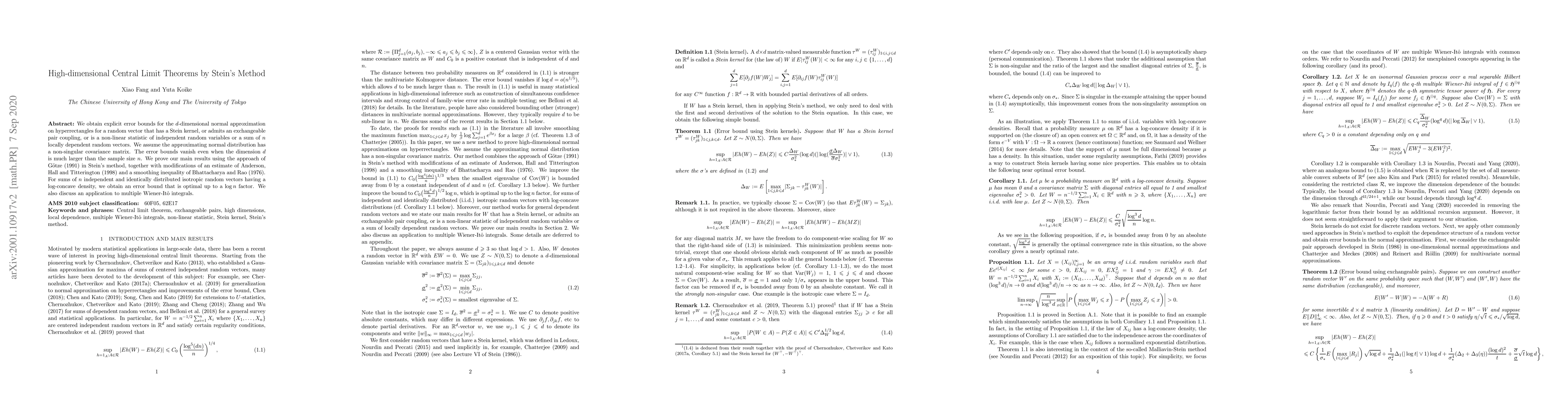 This paper develops explicit error bounds for high-dimensional normal approximations of random vectors with certain properties, achieving optimal errors up to a log factor in some cases.