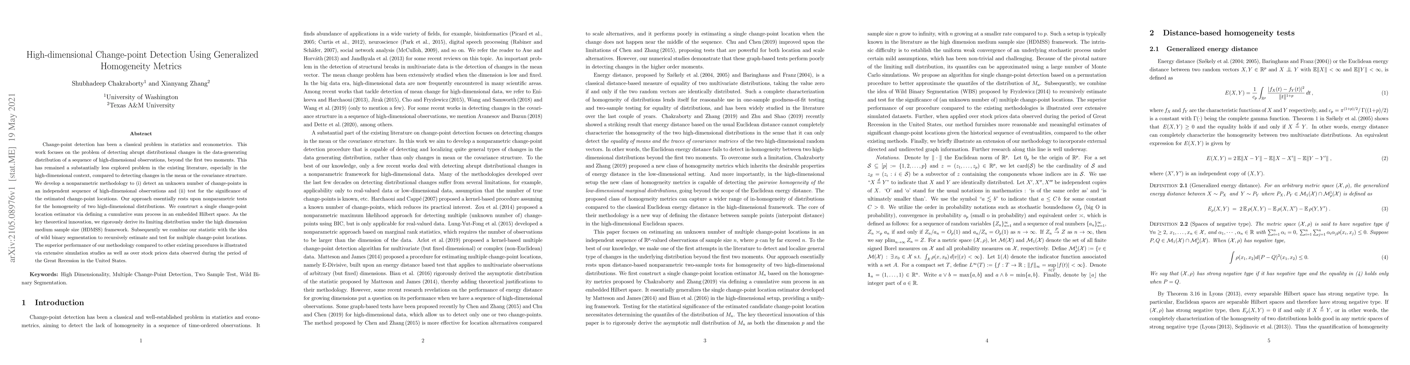 This paper develops a novel nonparametric method for detecting multiple change-points in high-dimensional data sequences, focusing on distributional changes beyond mean and covariance. It employs generalized homogeneity metrics and a recursive wild binary segmentation approach, demonstrating superior performance through simulations and real-world stock price data analysis.