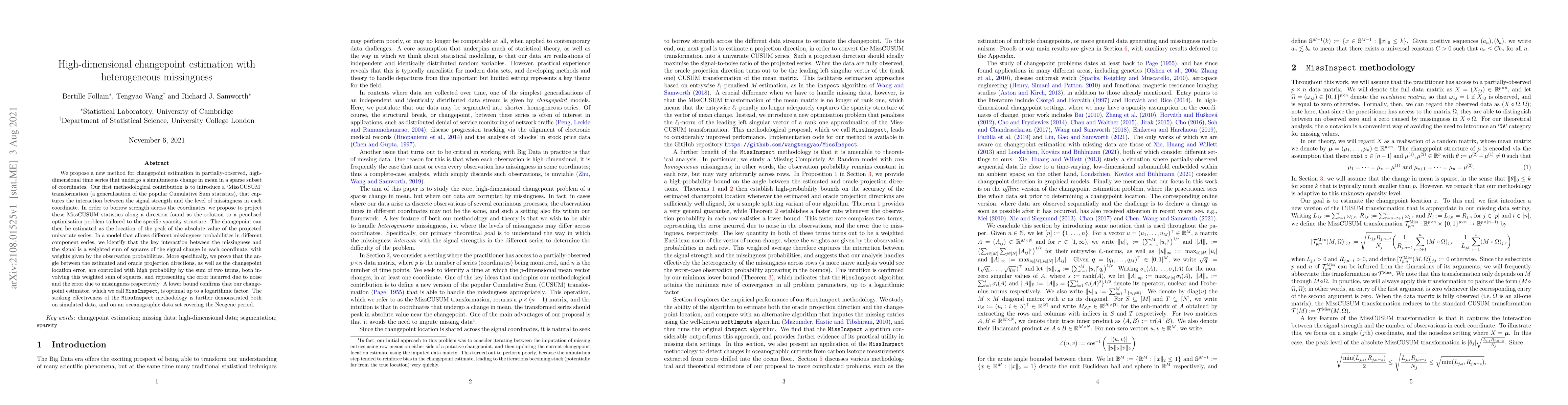 A new method called MissInspect is proposed for estimating changepoints in high-dimensional time series with missing data, achieving a trade-off between signal strength and noise, while borrowing strength across coordinates.