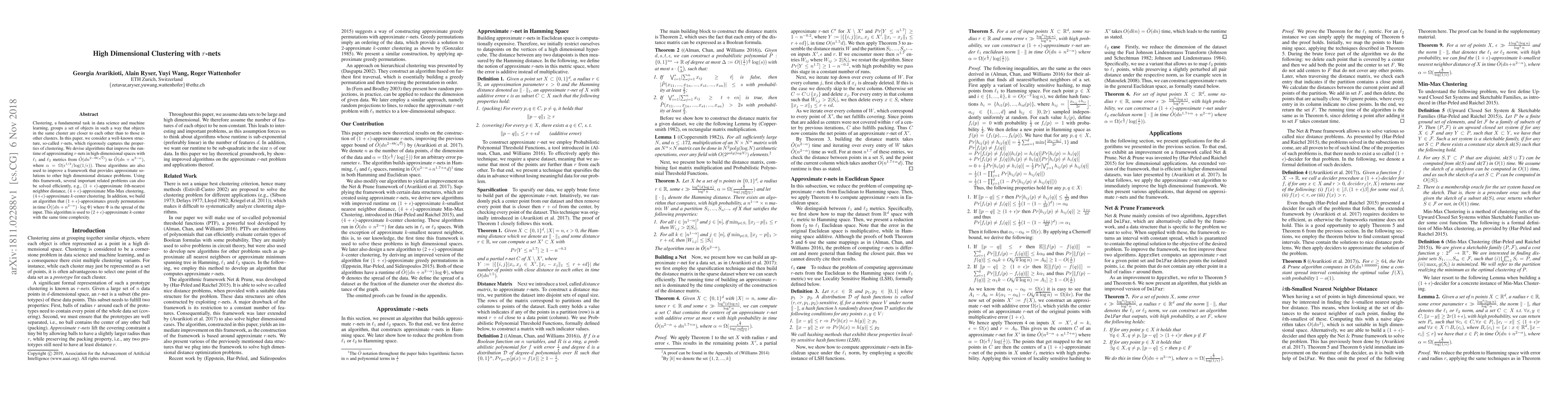 Clustering, a fundamental task in data science and machine learning, groups a set of objects in such a way that objects in the same cluster are closer to each other than to those in other clusters. In this paper, we consider a well-known structure, so-called $r$-nets, which rigorously captures the properties of clustering. We devise algorithms that improve the run-time of approximating $r$-nets in high-dimensional spaces with $\ell_1$ and $\ell_2$ metrics from $\tilde{O}(dn^{2-\Theta(\sqrt{\epsilon})})$ to $\tilde{O}(dn + n^{2-\alpha})$, where $\alpha = \Omega({\epsilon^{1/3}}/{\log(1/\epsilon)})$. These algorithms are also used to improve a framework that provides approximate solutions to other high dimensional distance problems. Using this framework, several important related problems can also be solved efficiently, e.g., $(1+\epsilon)$-approximate $k$th-nearest neighbor distance, $(4+\epsilon)$-approximate Min-Max clustering, $(4+\epsilon)$-approximate $k$-center clustering. In addition, we build an algorithm that $(1+\epsilon)$-approximates greedy permutations in time $\tilde{O}((dn + n^{2-\alpha}) \cdot \log{\Phi})$ where $\Phi$ is the spread of the input. This algorithm is used to $(2+\epsilon)$-approximate $k$-center with the same time complexity.