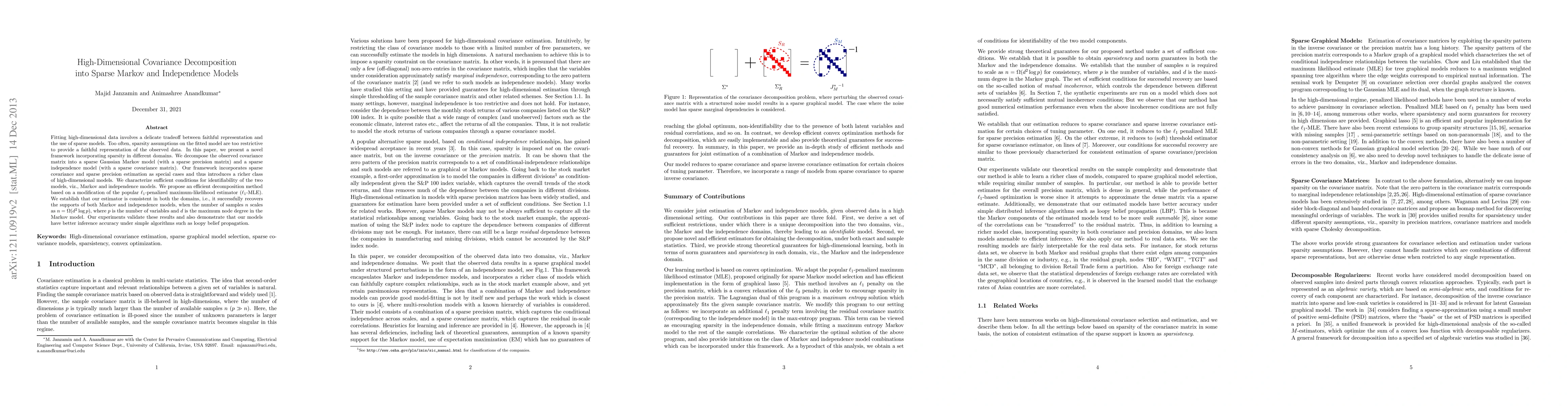 This paper introduces a novel framework for decomposing high-dimensional covariance matrices into sparse Gaussian Markov and independence models, proposing a consistent estimation method based on modified $\ell_1$-penalized maximum-likelihood. Experiments show improved inference accuracy compared to traditional methods.