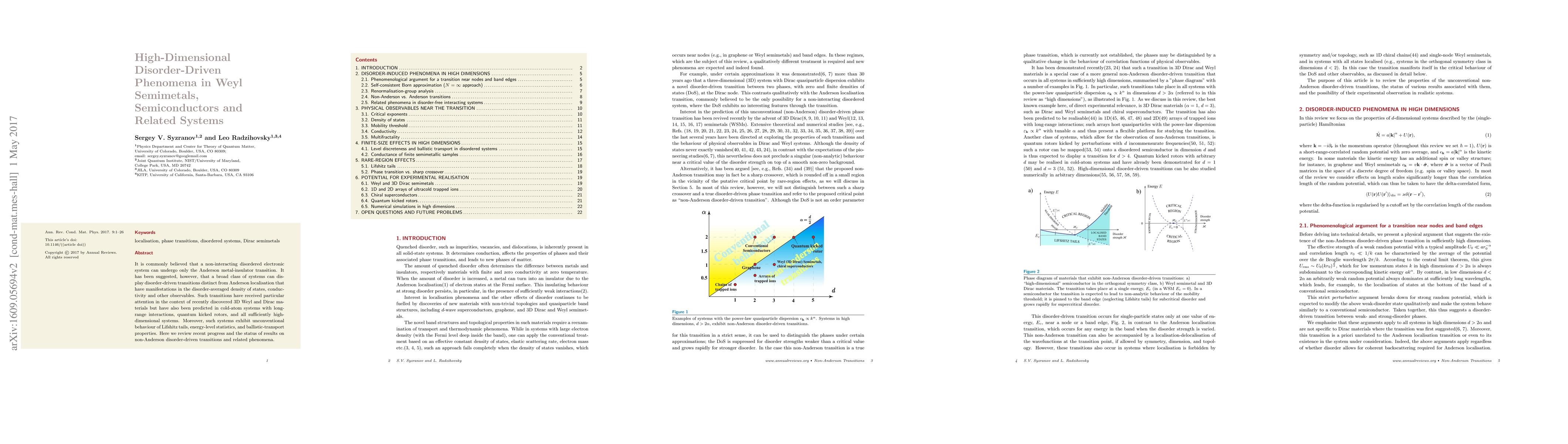 This paper reviews recent advancements in understanding disorder-driven phenomena in high-dimensional systems, beyond traditional Anderson localization, including Weyl semimetals and semiconductors. It highlights unconventional behaviors like Lifshitz tails and ballistic transport, emphasizing new types of disorder-induced transitions in various systems.