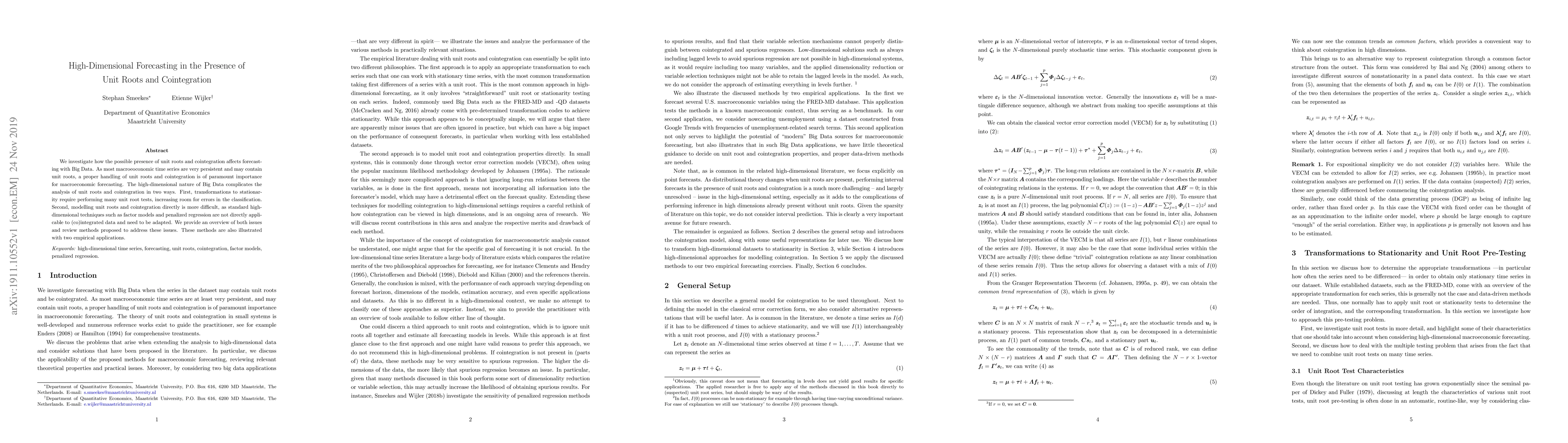 This paper explores the impact of unit roots and cointegration on high-dimensional forecasting in Big Data, emphasizing the challenges in macroeconomic time series analysis. It reviews methods to handle these issues and demonstrates their application through empirical examples.