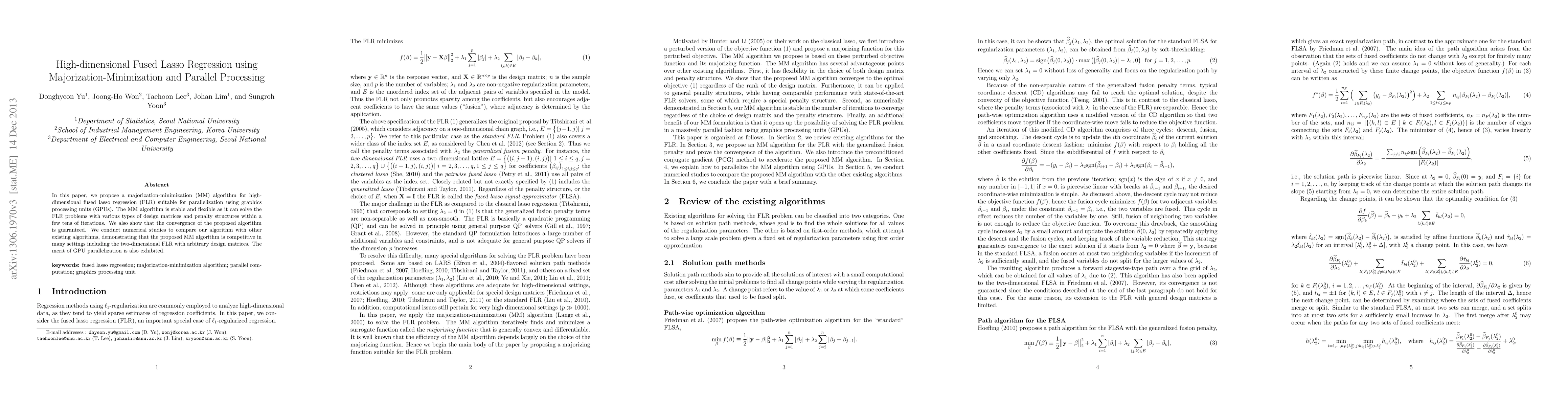 This paper proposes a majorization-minimization algorithm for high-dimensional fused lasso regression, optimized for parallel processing using GPUs. The algorithm is shown to be stable, flexible, and competitive in numerical studies, with guaranteed convergence.