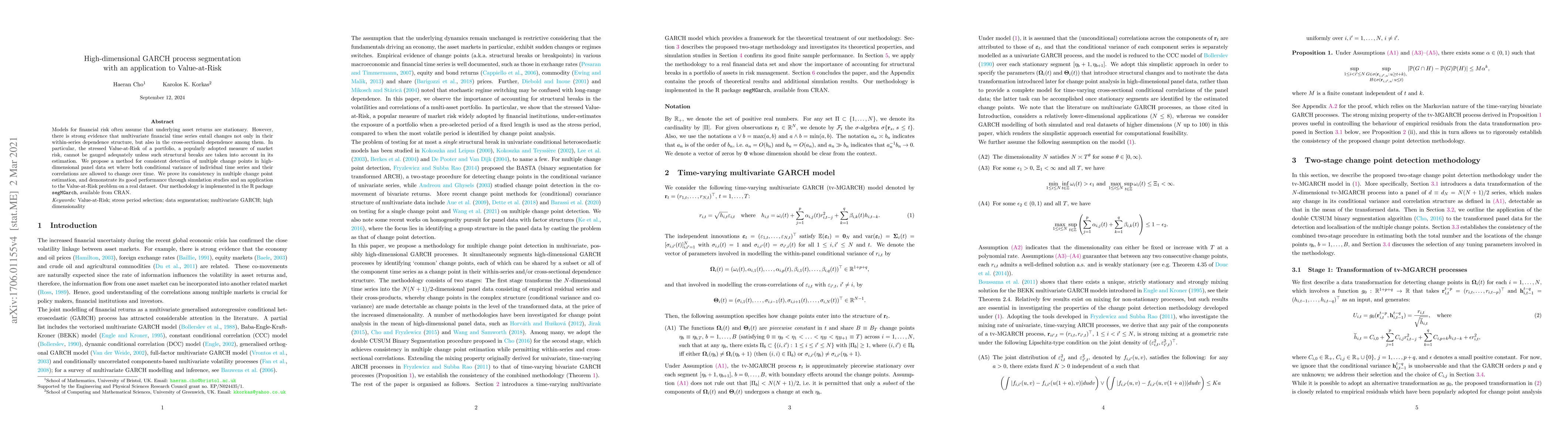 Models for financial risk often assume that underlying asset returns are stationary. However, there is strong evidence that multivariate financial time series entail changes not only in their within-series dependence structure, but also in the cross-sectional dependence among them. In particular, the stressed Value-at-Risk of a portfolio, a popularly adopted measure of market risk, cannot be gauged adequately unless such structural breaks are taken into account in its estimation. We propose a method for consistent detection of multiple change points in high-dimensional GARCH panel data set where both individual GARCH processes and their correlations are allowed to change over time. We prove its consistency in multiple change point estimation, and demonstrate its good performance through simulation studies and an application to the Value-at-Risk problem on a real dataset. Our methodology is implemented in the R package segMGarch, available from CRAN.