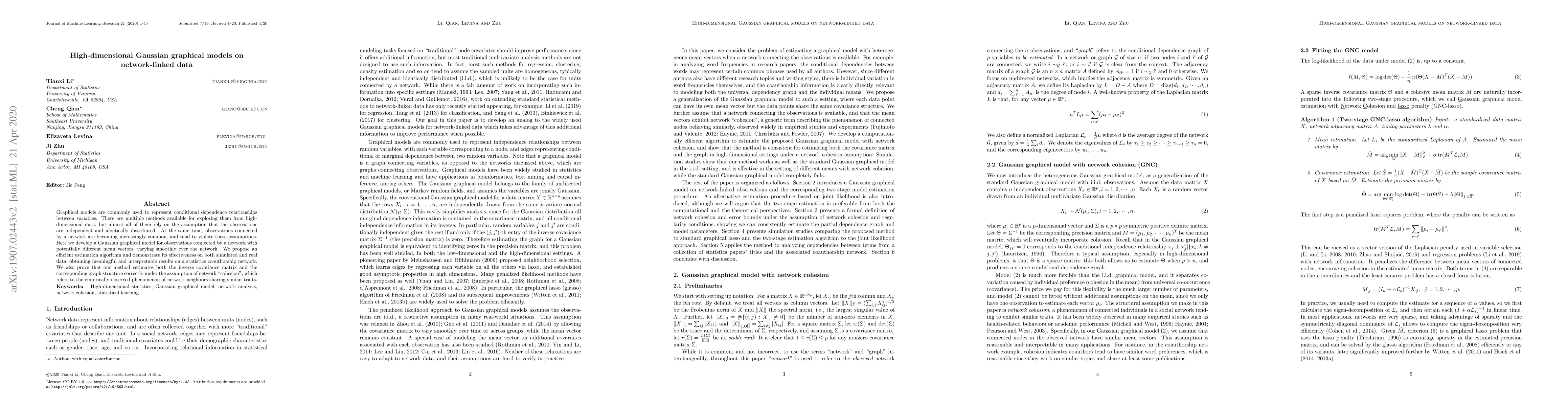 This paper introduces a new method for analyzing high-dimensional network-linked data using a Gaussian graphical model that accommodates different mean vectors over the network. The approach is demonstrated on statistics coauthorship networks with promising results.
