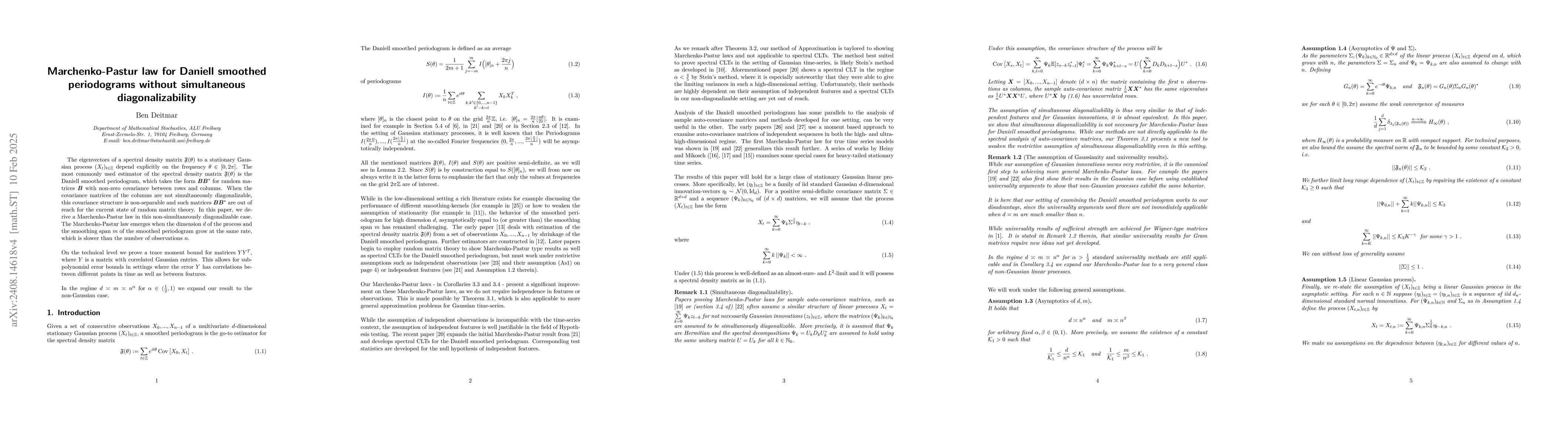 Except for trivial cases, the eigenvectors of spectral density matrices $f(\theta)$ corresponding to stationary Gaussian process depend explicitly on the frequency $\theta \in [0,2\pi]$. The most commonly used estimator of the spectral density matrix is the smoothed periodogram, which takes the form of sample covariance matrices $YY^T$ for data-matrices $Y$ with iid columns that each have differing underlying covariance structure. However, the covariance matrices of the columns need not be simultaneously diagonalizable and therefore, such sample covariance matrices are out of reach for the current state of random matrix theory. In this paper, we derive a Marchenko-Pastur law in this non-simultaneously diagonalizable case. On the technical level, we make the following two major contributions: - Except for negligible approximations we construct a matrix with the same eigenvalue distribution as the smoothed periodogram, but which is much more accessible. To this aim, we introduce a generalization of graph-theoretical methods specific to Gaussian random matrices, which allow for the exploitation of independence properties in-between either columns or rows. - By means of the Lagrange inversion formula, we draw a novel connection between trace moment expansions and the Marchen\-ko-Pastur equation, which enables us to formulate deviation inequalities for the corresponding $l$-th moments for all $l \in \mathbb{N}$. The Marchenko-Pastur law emerges when the dimension $d$ of the process and the smoothing span $m$ of the smoothed periodogram grow at the same rate, which is slower than the number of observations $n$.