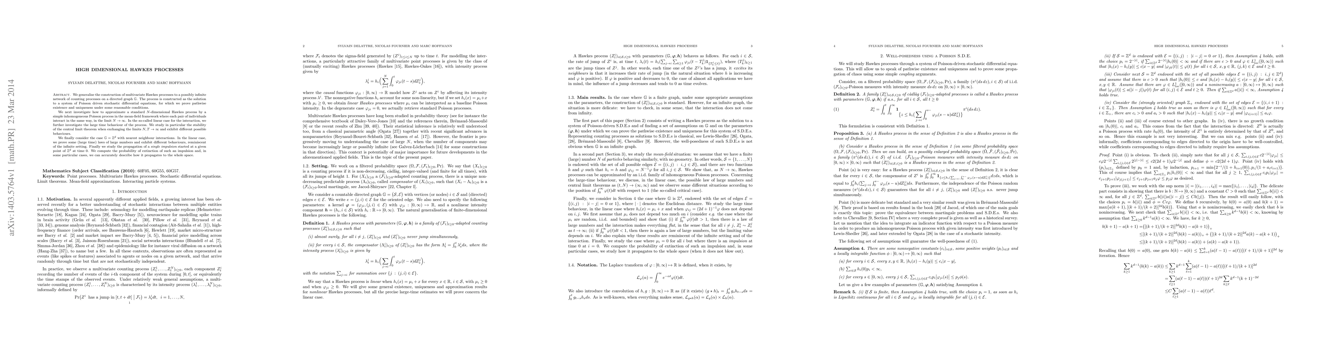 This paper extends Hawkes processes to infinite networks of counting processes on directed graphs, investigating approximations, large-time behavior, and propagation of impulses in various scenarios.