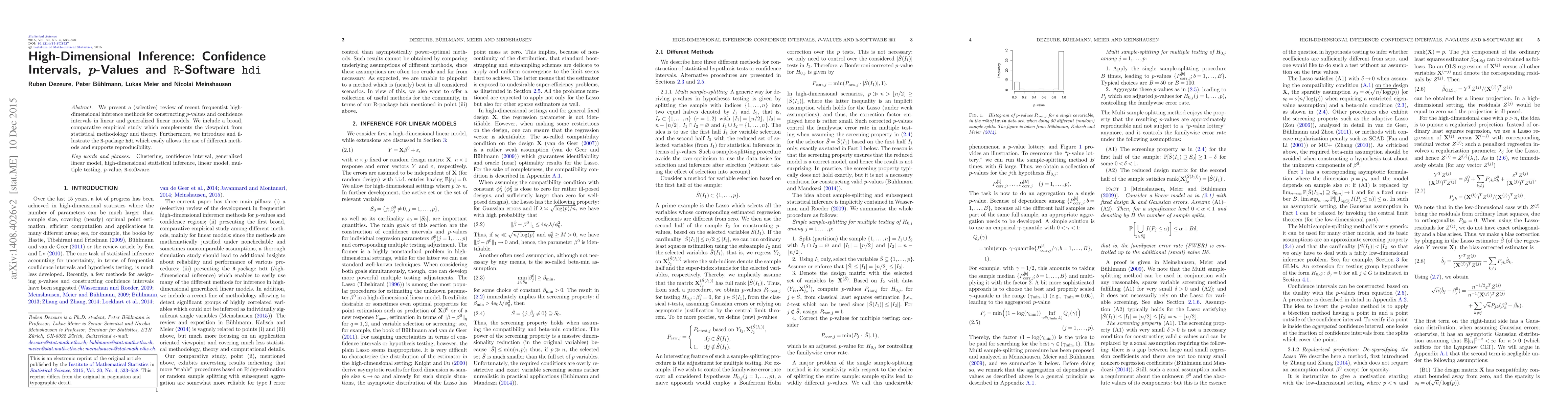 This review compares recent high-dimensional inference methods for constructing p-values and confidence intervals in linear models, introducing a new R package called hdi that supports reproducibility and easy method switching.