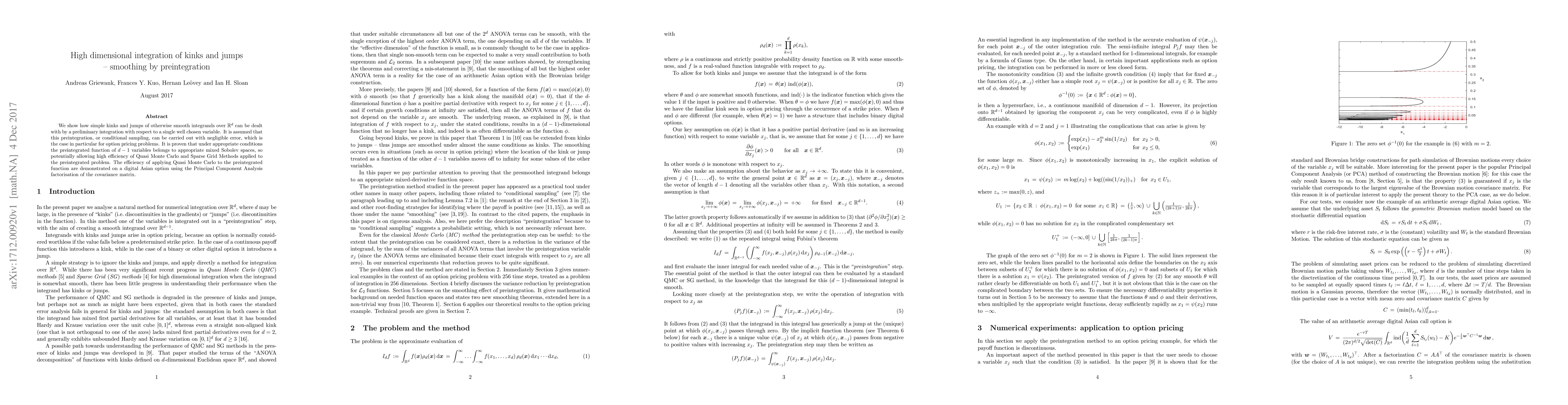Researchers developed a method to integrate kinks and jumps in high-dimensional functions using preintegration, which can enable efficient use of Quasi Monte Carlo and Sparse Grid Methods for complex problems like option pricing.
