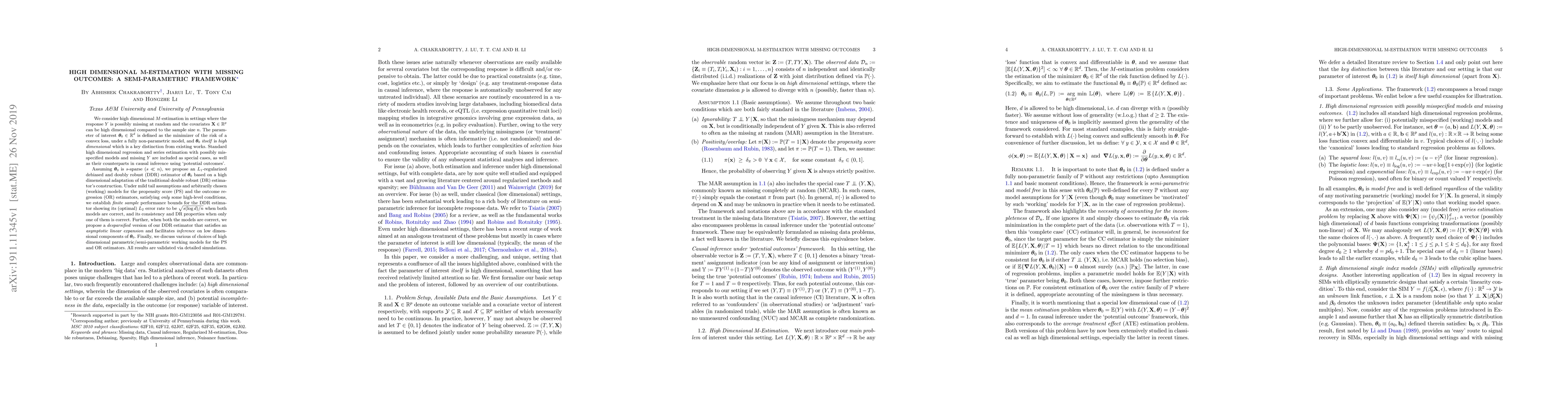 This paper proposes an $L_1$-regularized debiased and doubly robust (DDR) estimator for high dimensional $M$-estimation in settings with missing outcomes and high-dimensional covariates. The DDR estimator achieves optimal $L_2$ error rates under mild conditions and maintains consistency when only one of the working models is correct. Simulation results validate the proposed method's performance.