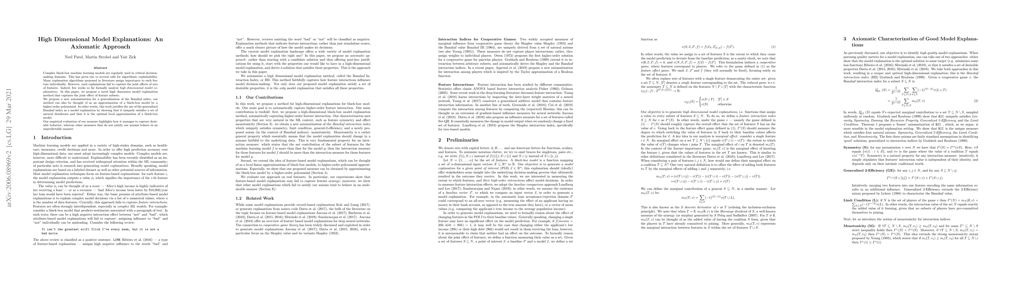 Complex black-box machine learning models are regularly used in critical decision-making domains. This has given rise to several calls for algorithmic explainability. Many explanation algorithms proposed in literature assign importance to each feature individually. However, such explanations fail to capture the joint effects of sets of features. Indeed, few works so far formally analyze high-dimensional model explanations. In this paper, we propose a novel high dimension model explanation method that captures the joint effect of feature subsets. We propose a new axiomatization for a generalization of the Banzhaf index; our method can also be thought of as an approximation of a black-box model by a higher-order polynomial. In other words, this work justifies the use of the generalized Banzhaf index as a model explanation by showing that it uniquely satisfies a set of natural desiderata and that it is the optimal local approximation of a black-box model. Our empirical evaluation of our measure highlights how it manages to capture desirable behavior, whereas other measures that do not satisfy our axioms behave in an unpredictable manner.