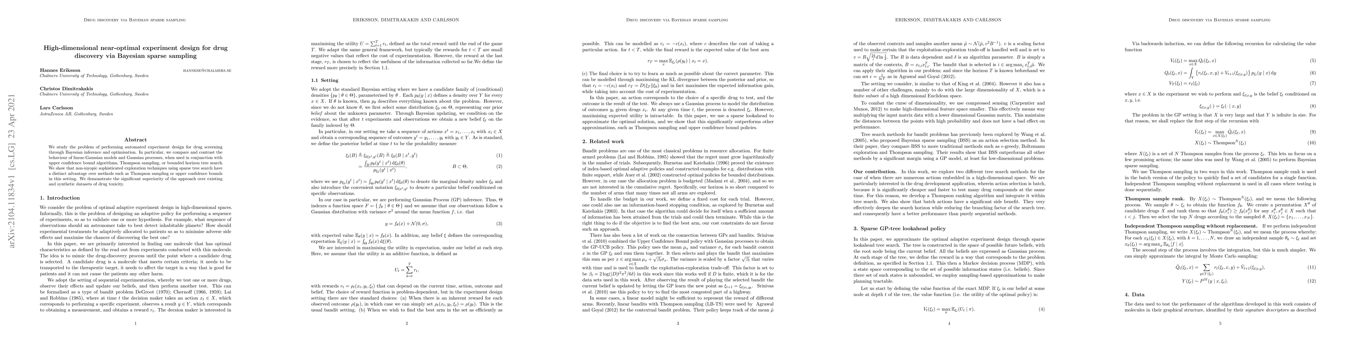 Researchers developed an experiment design method that outperforms existing approaches in drug discovery, using Bayesian sparse sampling to efficiently test potential drugs. Their method shows significant superiority over others on synthetic and real-world datasets of drug toxicity.
