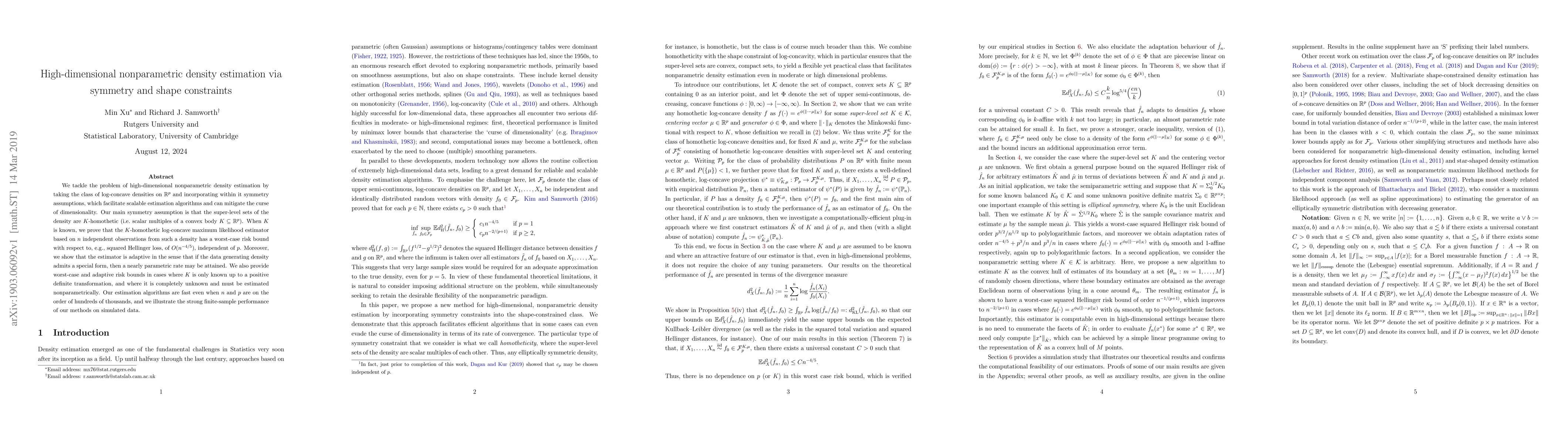 This paper proposes scalable high-dimensional density estimation methods for log-concave densities by incorporating symmetry constraints, specifically $K$-homothetic super-level sets, which mitigate the curse of dimensionality. The authors prove that their $K$-homothetic log-concave maximum likelihood estimator achieves a risk bound of $O(n^{-4/5})$, independent of the dimension $p$, and demonstrate adaptive performance under special data forms.