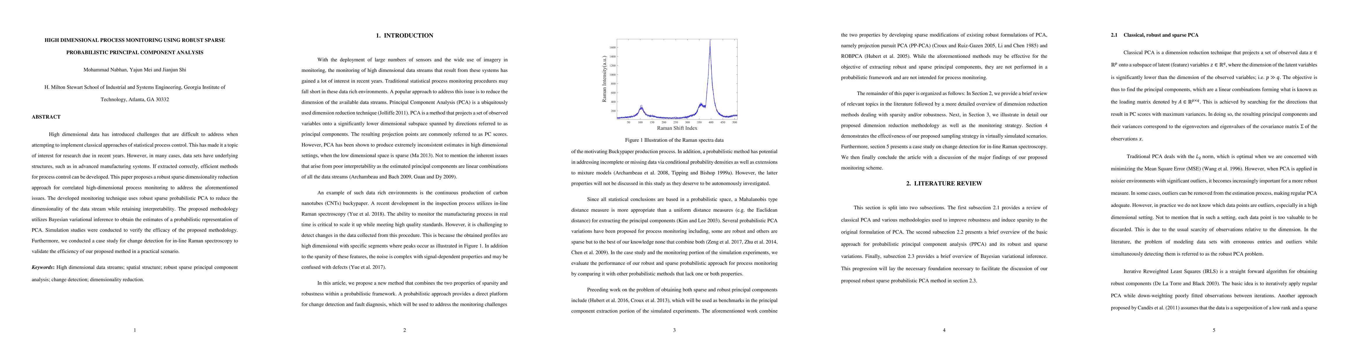 This paper proposes a robust sparse probabilistic PCA approach for monitoring high-dimensional processes, utilizing Bayesian variational inference to maintain interpretability while reducing dimensionality. Simulation studies and a case study in Raman spectroscopy validate the method's effectiveness for process control.