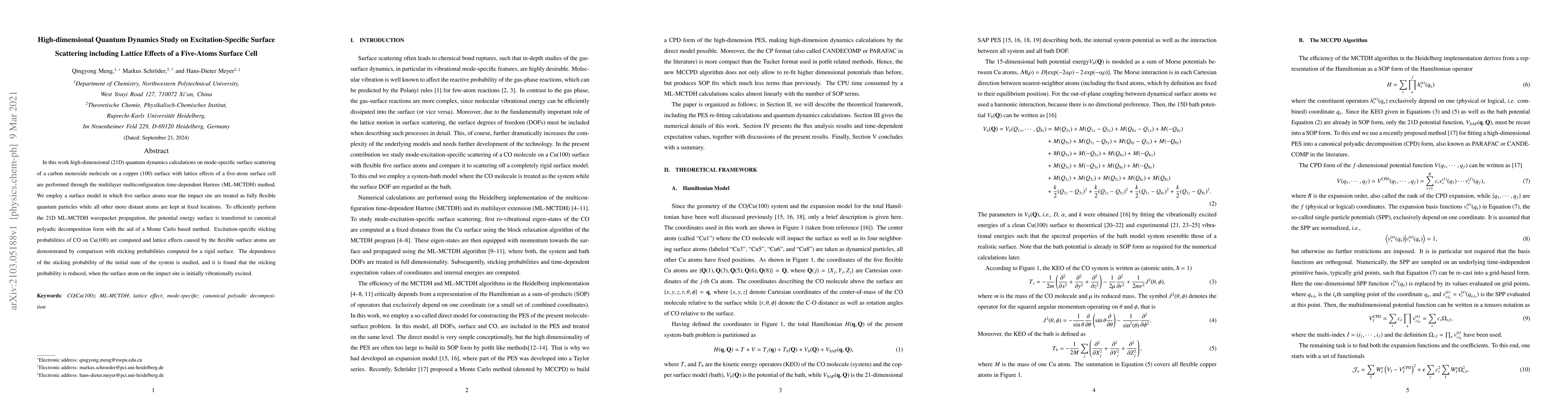 This paper investigates high-dimensional quantum dynamics of CO scattering on a Cu(100) surface using ML-MCTDH, highlighting lattice effects from five flexible surface atoms. It finds that initial vibrational excitation of the surface atom reduces the sticking probability compared to a rigid lattice.