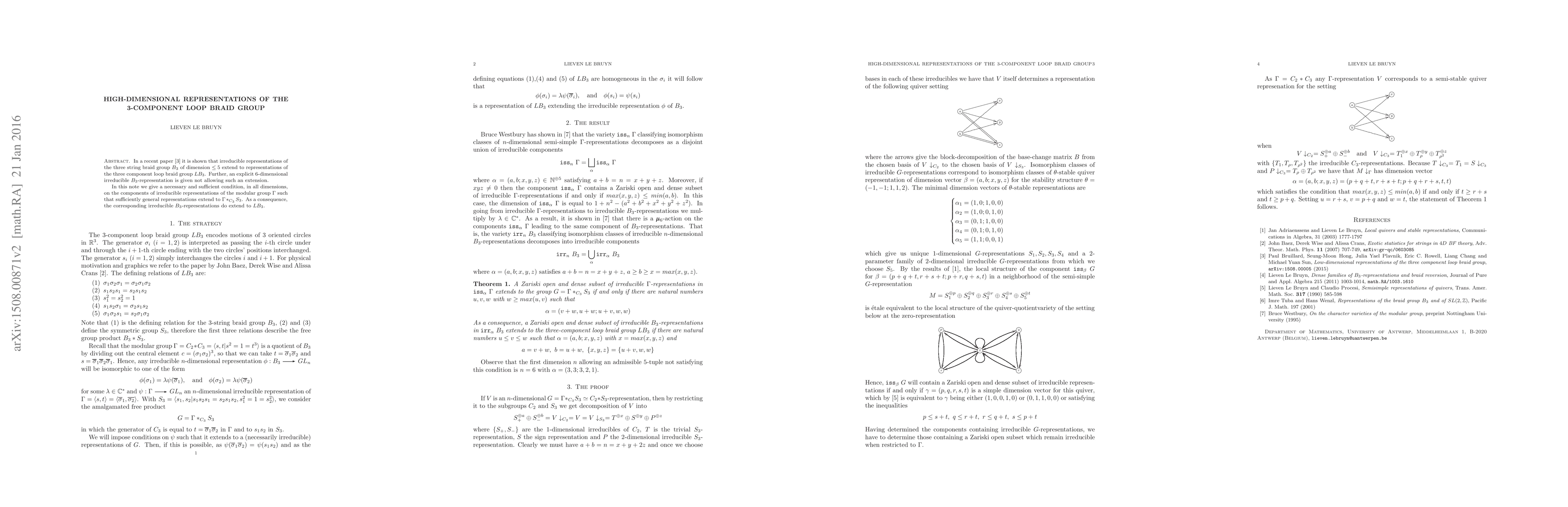 In a recent paper here arXiv:1508.0005 it is shown that irreducible representations of the three string braid group $B_3$ of dimensions $\leq 5$ extend to representations of the 3-component loop braid group $LB_3$. Further, an explicit $6$-dimensional irreducible $B_3$-representation is given that does not extend. In this note we give a necessary and sufficient condition, in all dimensions, on the components of irreducible representations of the modular group $\Gamma$ such that sufficiently general representations extend to $\Gamma \ast_{C_3} S_3$. As a consequence, the corresponding irreducible $B_3$-representations do extend to $LB_3$.