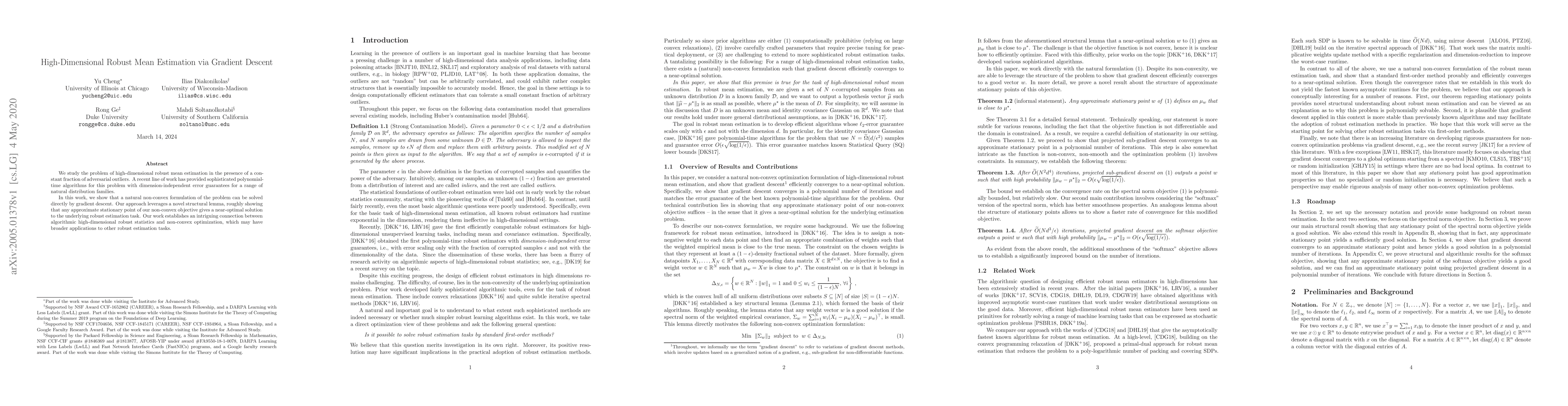 This paper proposes using gradient descent to solve high-dimensional robust mean estimation problems with adversarial outliers, leveraging a novel structural lemma to show that approximate stationary points yield near-optimal solutions. The work bridges algorithmic high-dimensional robust statistics and non-convex optimization, potentially extending to other robust estimation tasks.