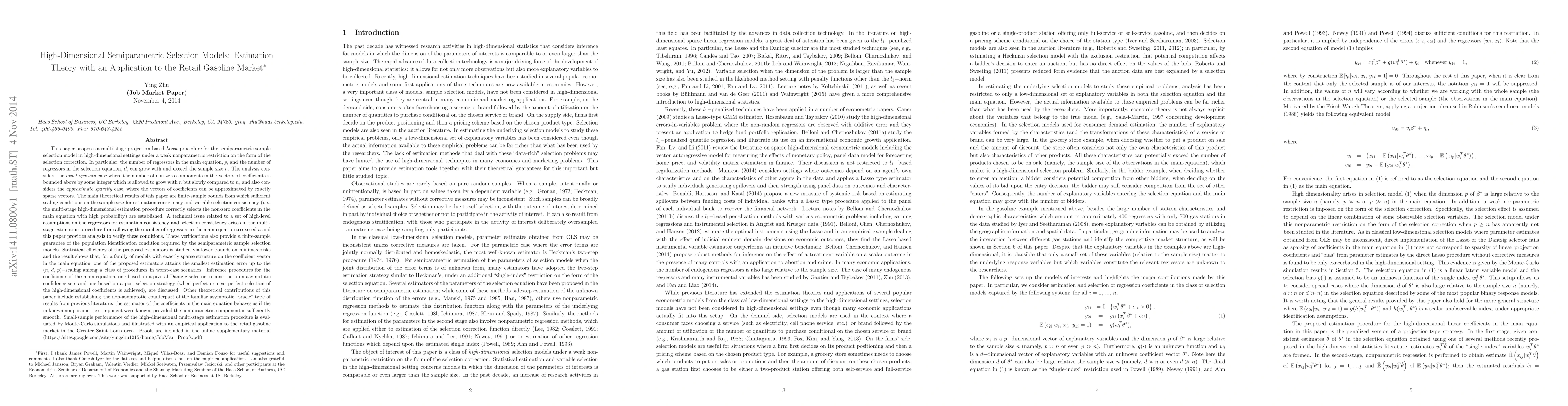 This paper proposes a multi-stage projection-based Lasso procedure for the semiparametric sample selection model in high-dimensional settings under a weak nonparametric restriction on the selection correction. In particular, the number of regressors in the main equation, p, and the number of regressors in the selection equation, d, can grow with and exceed the sample size n. The analysis considers the exact sparsity case and the approximate sparsity case. The main theoretical results are finite-sample bounds from which sufficient scaling conditions on the sample size for estimation consistency and variable-selection consistency are established. Statistical efficiency of the proposed estimators is studied via lower bounds on minimax risks and the result shows that, for a family of models with exactly sparse structure on the coefficient vector in the main equation, one of the proposed estimators attains the smallest estimation error up to the (n,d,p)-scaling among a class of procedures in worst-case scenarios. Inference procedures for the coefficients of the main equation, one based on a pivotal Dantzig selector to construct non-asymptotic confidence sets and one based on a post-selection strategy, are discussed. Other theoretical contributions include establishing the non-asymptotic counterpart of the familiar asymptotic oracle results from previous literature: the estimator of the coefficients in the main equation behaves as if the unknown nonparametric component were known, provided the nonparametric component is sufficiently smooth. Small-sample performance of the high-dimensional multi-stage estimation procedure is evaluated by Monte-Carlo simulations and illustrated with an empirical application to the retail gasoline market in the Greater Saint Louis area.