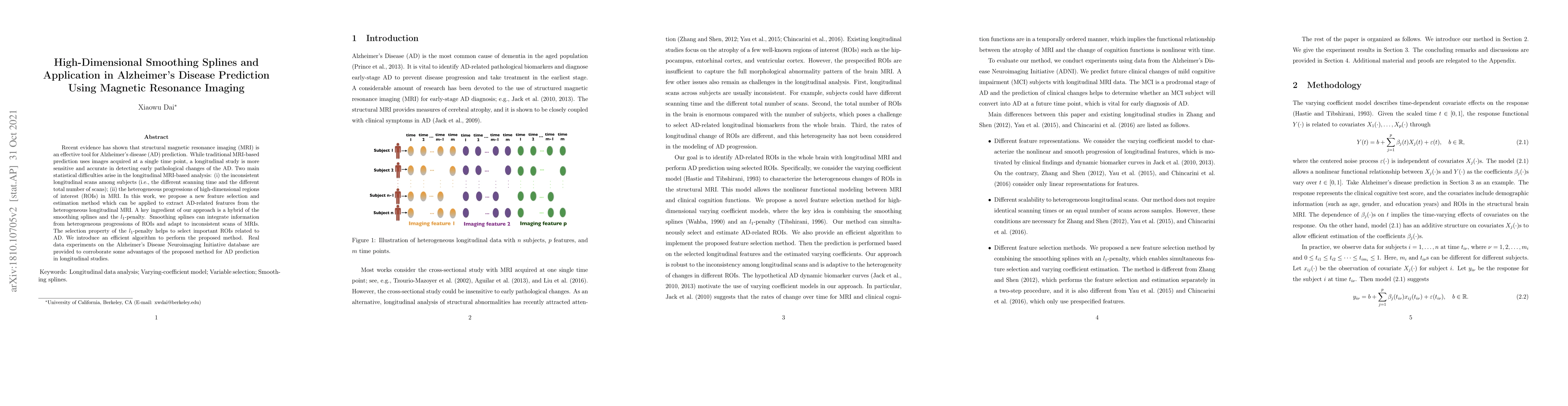 Recent evidence has shown that structural magnetic resonance imaging (MRI) is an effective tool for Alzheimer's disease (AD) prediction and diagnosis. While traditional MRI-based diagnosis uses images acquired at a single time point, a longitudinal study is more sensitive and accurate in detecting early pathological changes of the AD. Two main difficulties arise in longitudinal MRI-based diagnosis: (1) the inconsistent longitudinal scans among subjects (i.e., different scanning time and different total number of scans); (2) the heterogeneous progressions of high-dimensional regions of interest (ROIs) in MRI. In this work, we propose a novel feature selection and estimation method which can be applied to extract features from the heterogeneous longitudinal MRI. A key ingredient of our method is the combination of smoothing splines and the $l_1$-penalty. We perform experiments on the Alzheimer's Disease Neuroimaging Initiative (ADNI) database. The results corroborate the advantages of the proposed method for AD prediction in longitudinal studies.