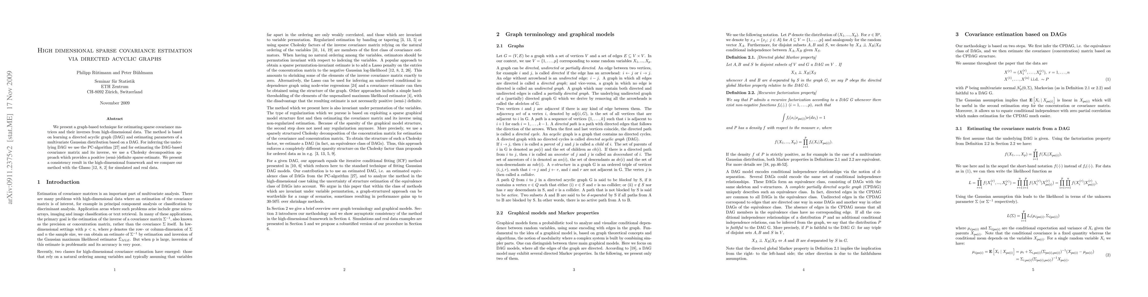 This paper proposes a graph-based method for estimating sparse covariance matrices using directed acyclic graphs (DAGs) and the PC-algorithm for DAG inference, followed by a Cholesky decomposition for parameter estimation. The method is compared with the Glasso on both simulated and real data.