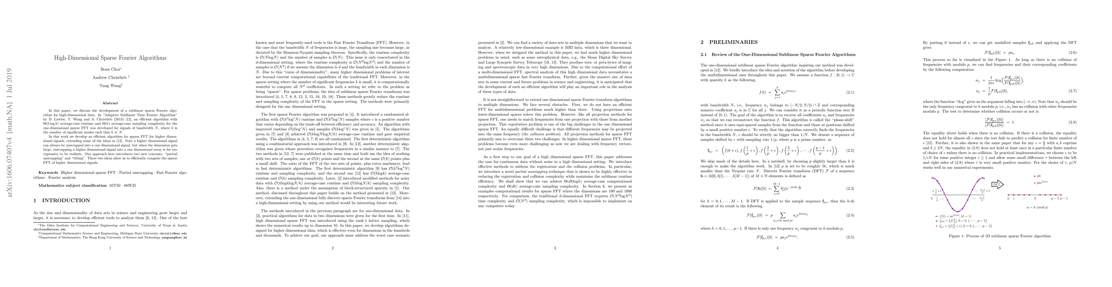 This paper presents an efficient sublinear sparse Fourier algorithm for high-dimensional data, introducing 'partial unwrapping' and 'tilting' concepts to compute sparse FFT of higher dimensional signals without the expense of unwrapping into a one-dimensional array.