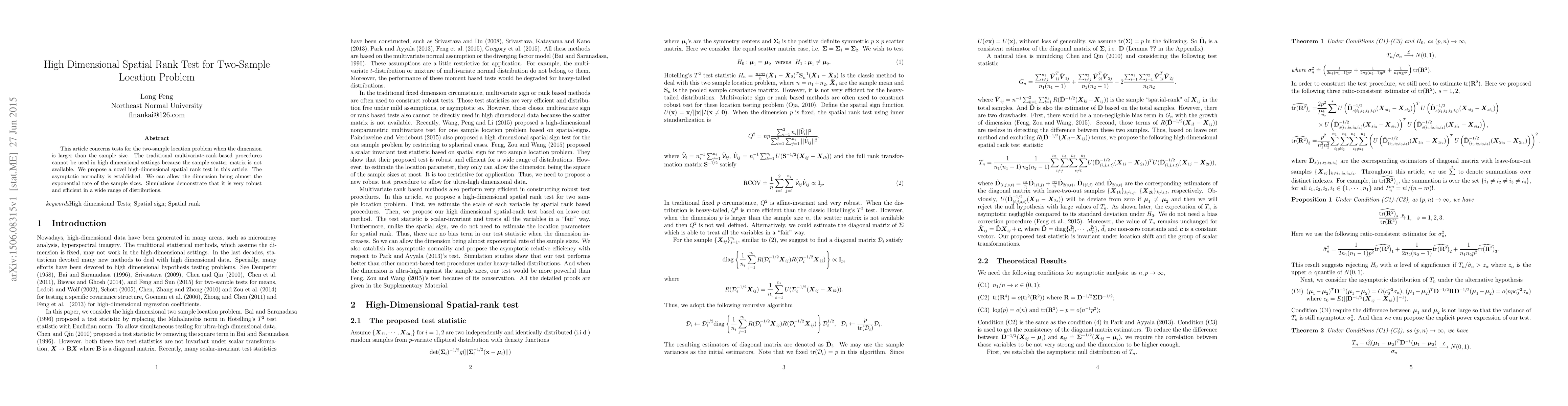 This paper introduces a novel high-dimensional spatial rank test for the two-sample location problem, where the dimension exceeds the sample size, establishing its asymptotic normality and demonstrating its robustness and efficiency through simulations across various distributions.