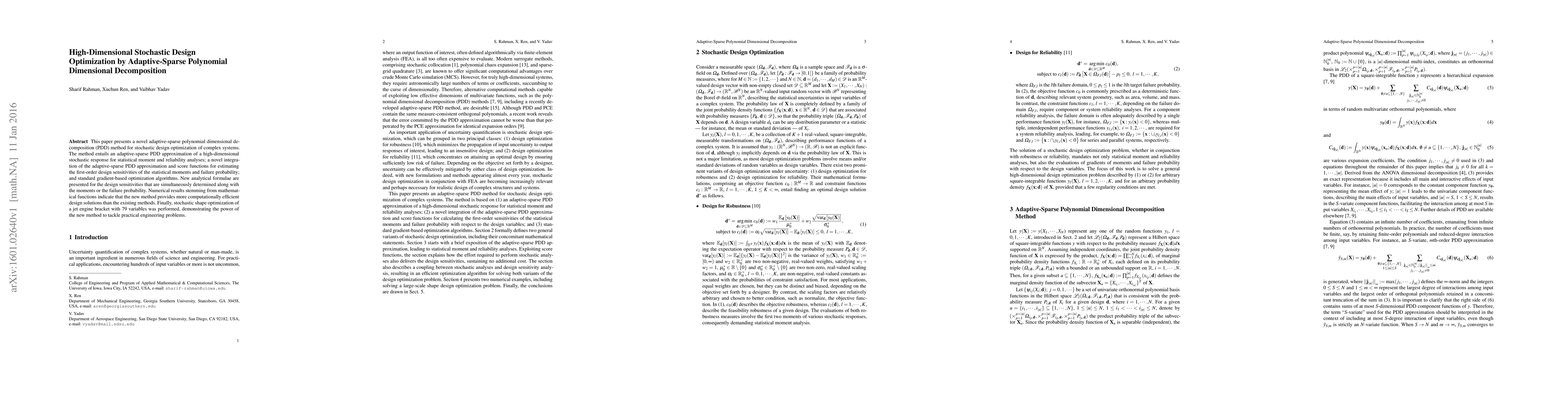 This paper introduces an adaptive-sparse polynomial dimensional decomposition method for optimizing complex systems under stochastic conditions, achieving higher computational efficiency compared to existing methods, as demonstrated through a practical jet engine bracket optimization problem.